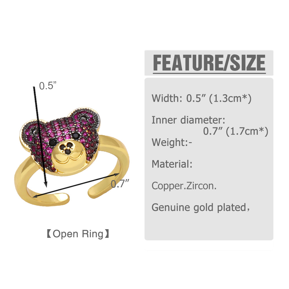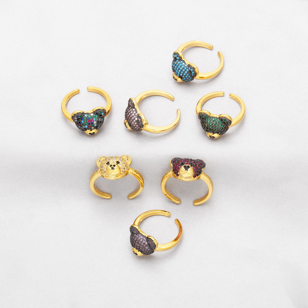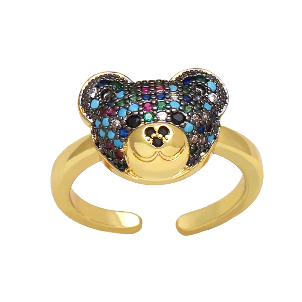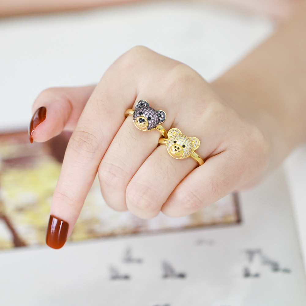 European and American fashion personality bear ring female trend sweet ring Internet celebrity cute open bear ring rik49