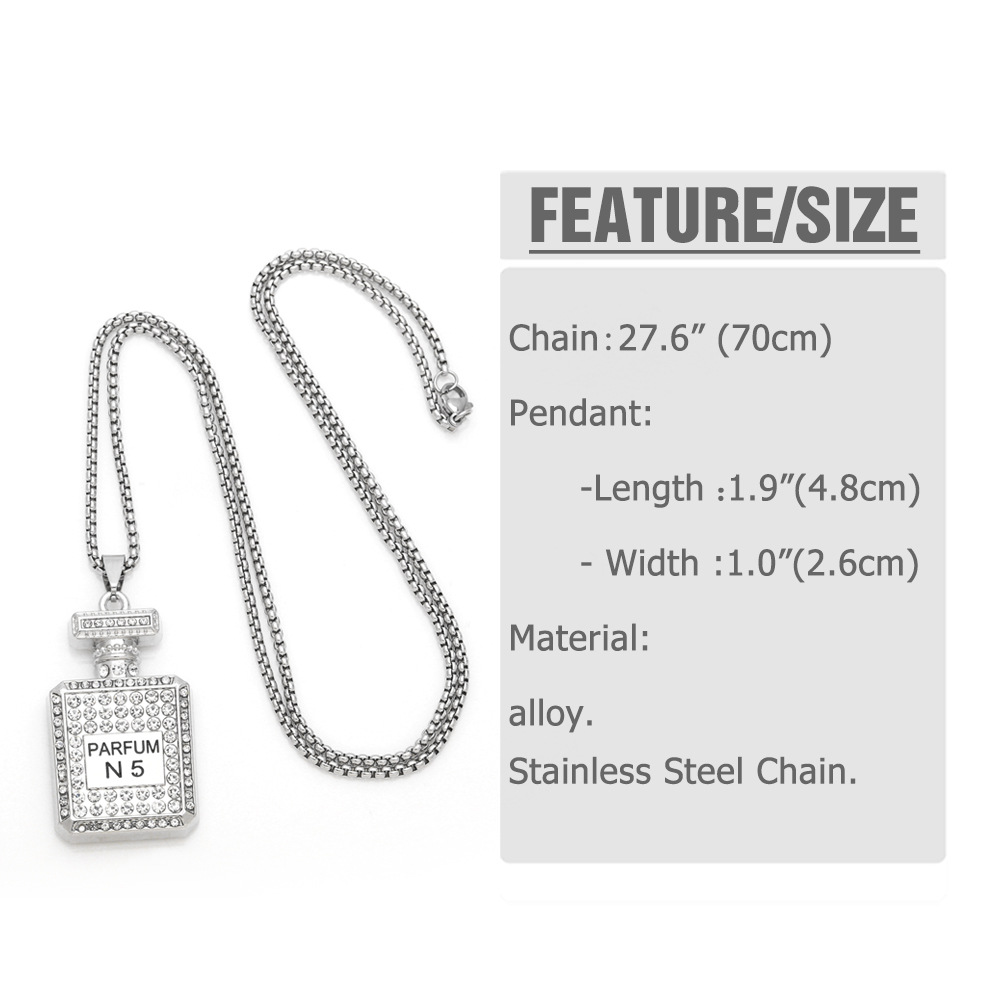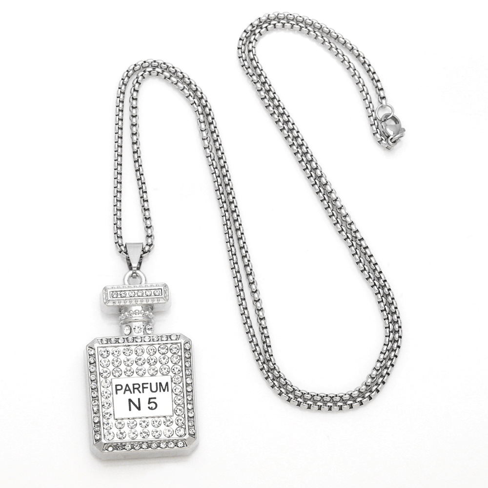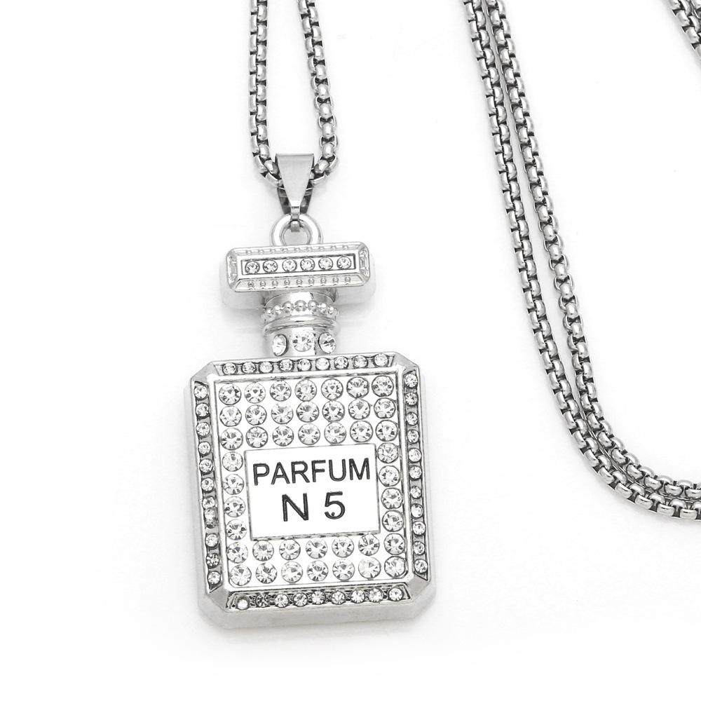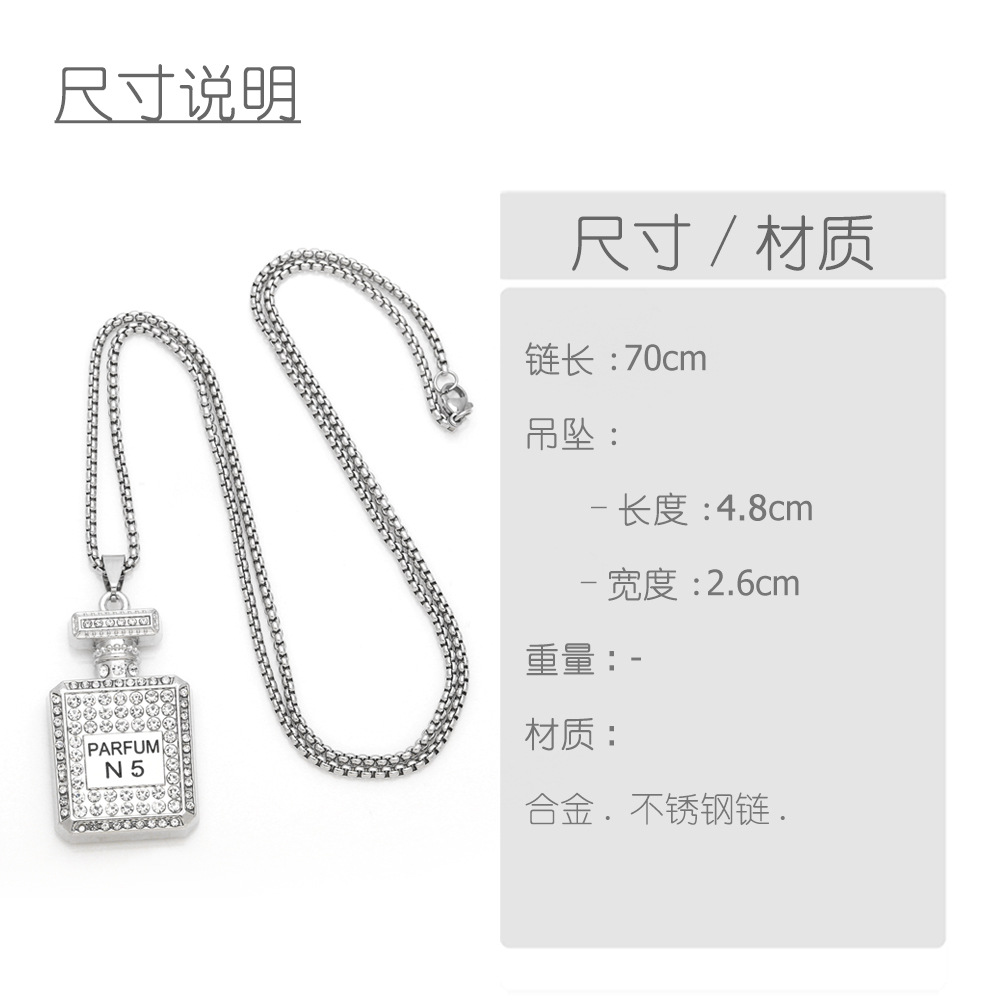 European and American fashion personality long sweater chain female hip-hop disco diamond No. 5 perfume bottle pendant necklace nkb316