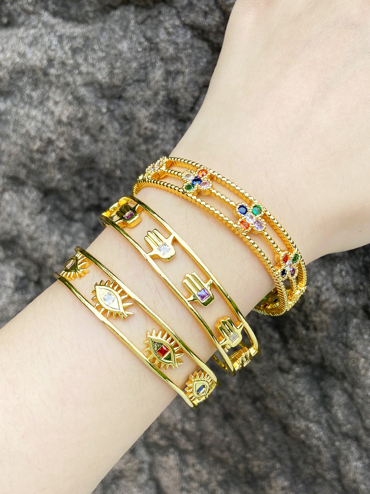 European and American fashion personality palm bracelet female niche design copper plated 18k gold high-end retro jewelry brk99