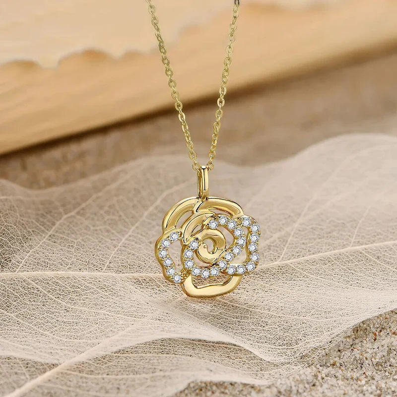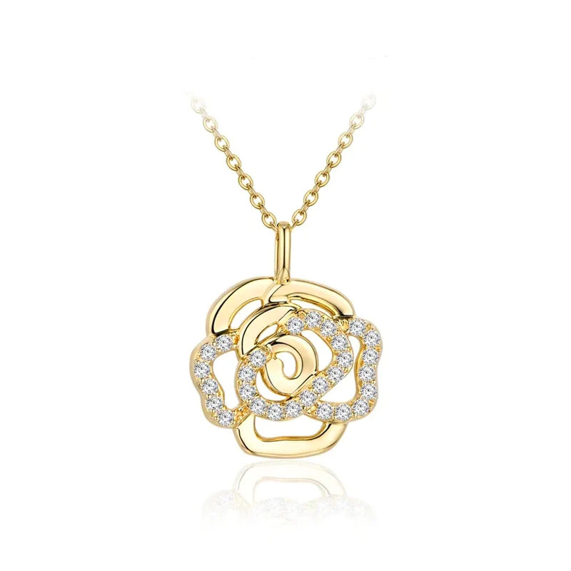 European and American fashion retro necklace rose camellia hollow pendant hot selling money jewelry