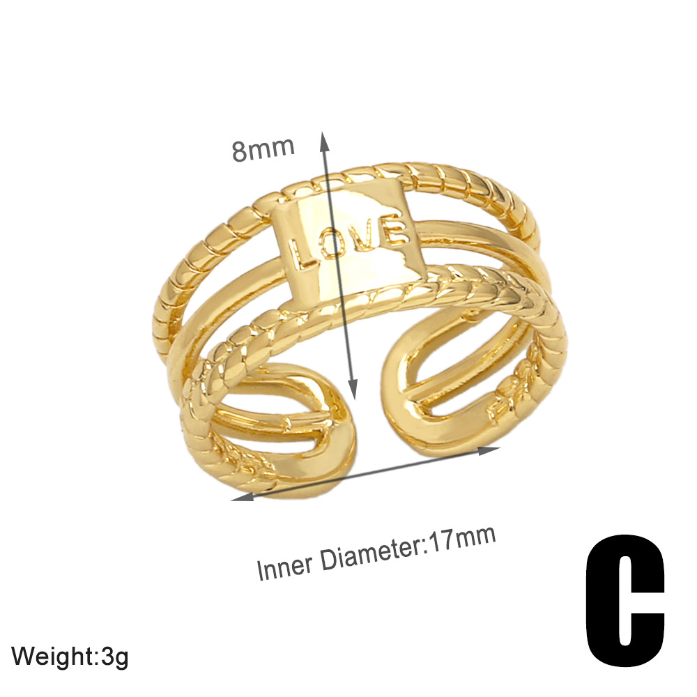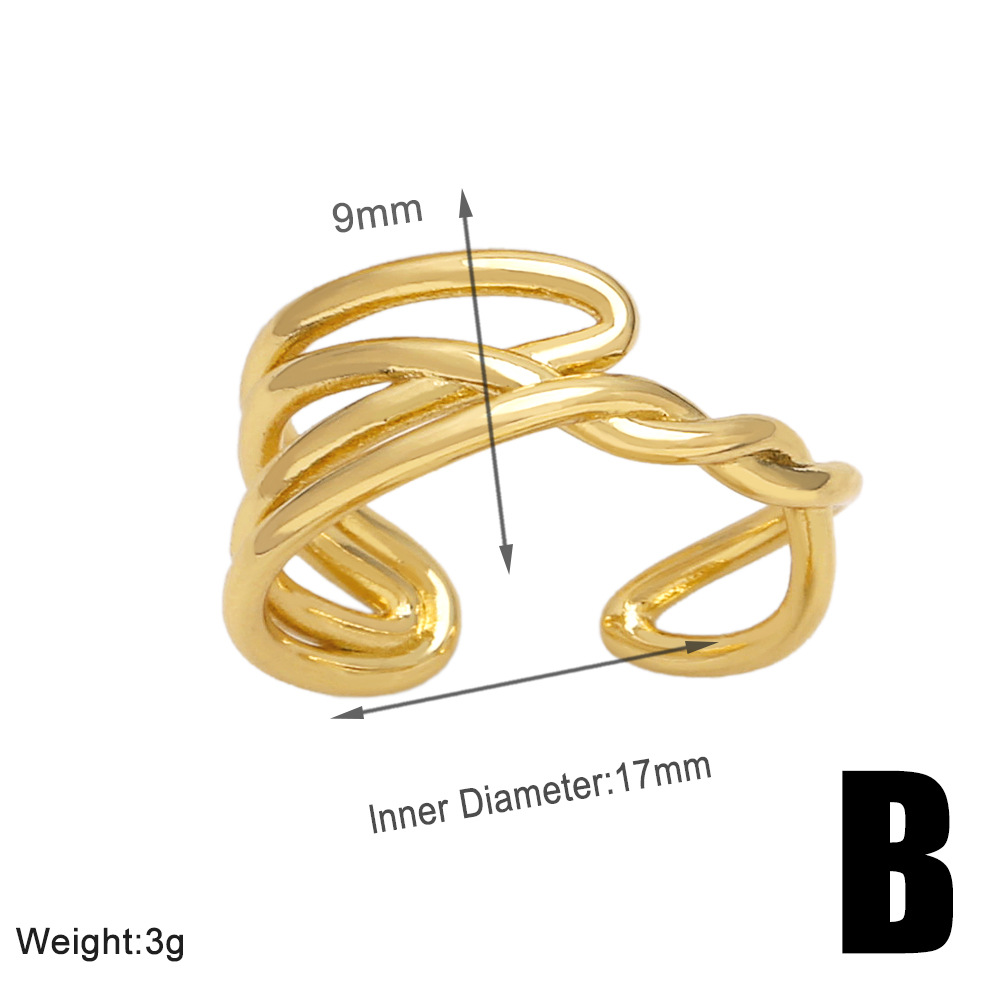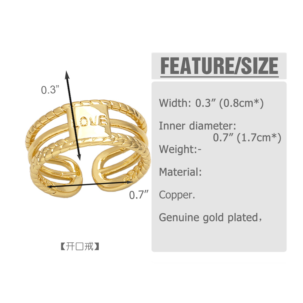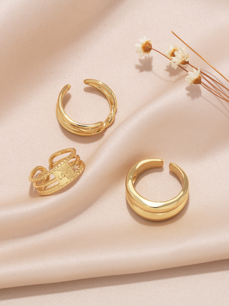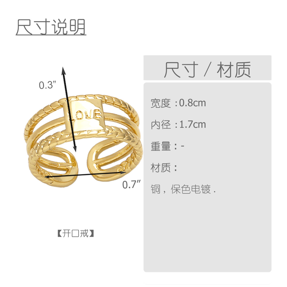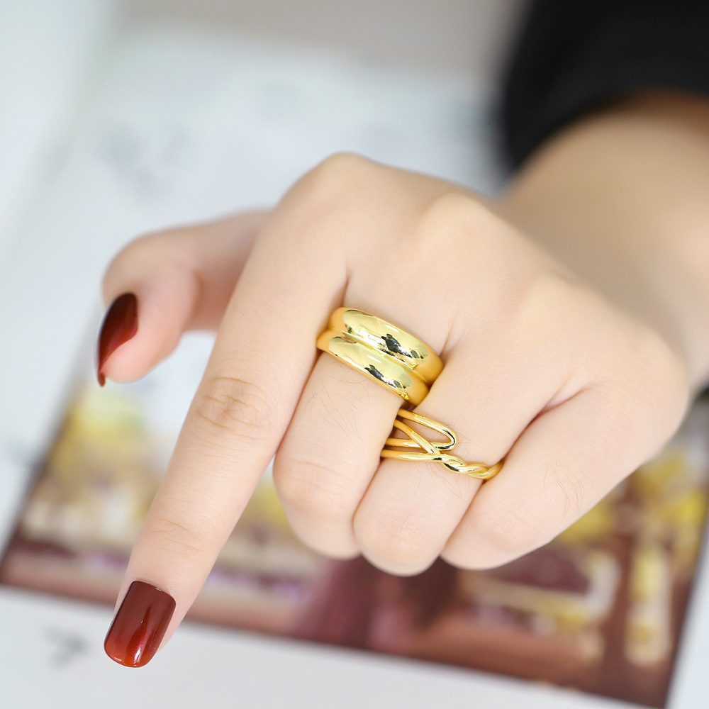European and American fashion retro ring personality creative versatile copper plated 18k gold double ring female ring rih84