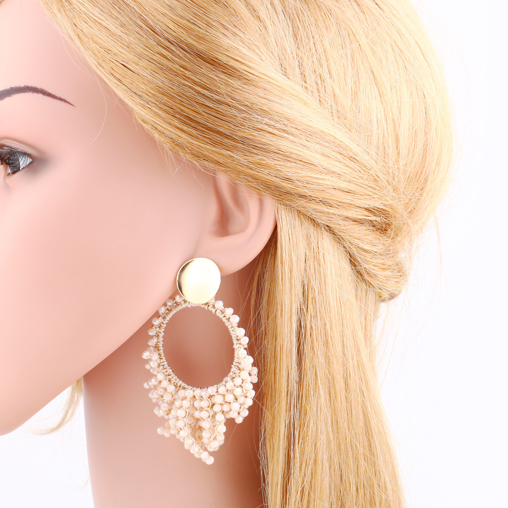 European and American fashion rice bead earrings retro beaded tassel earrings exaggerated long ethnic style earrings err59