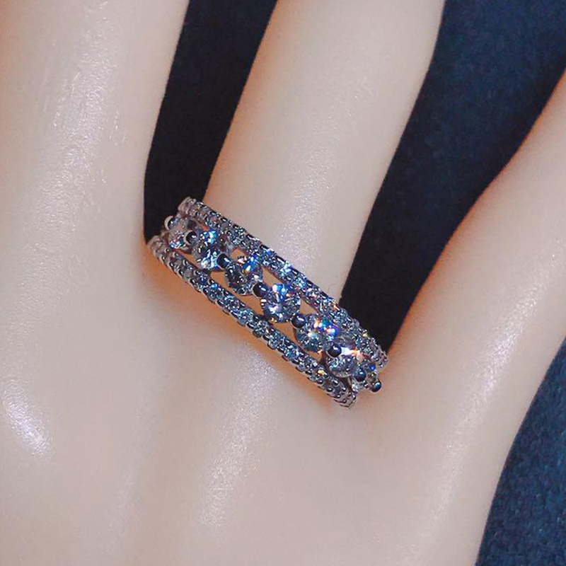 Micro-inlaid celebrity style classic all-match popular ring six-claw zircon wedding ring European and American style light luxury ring