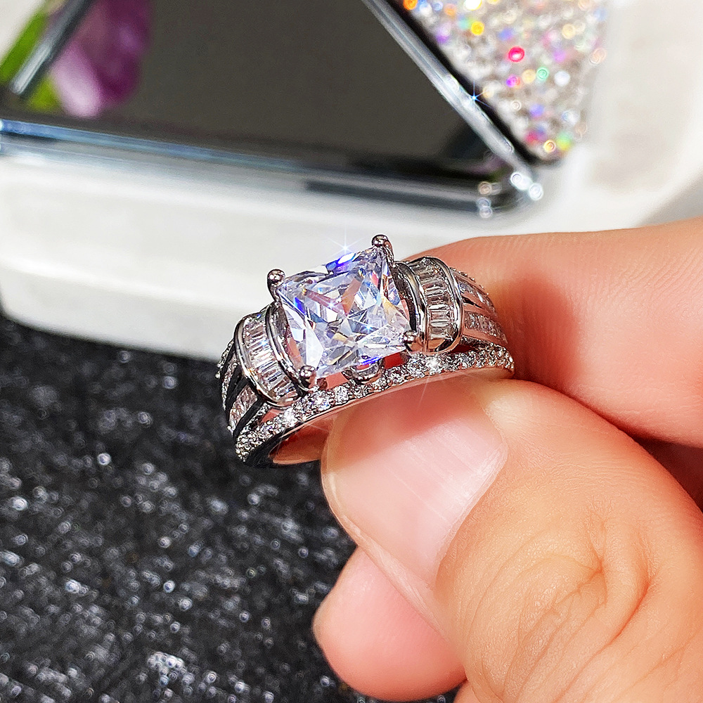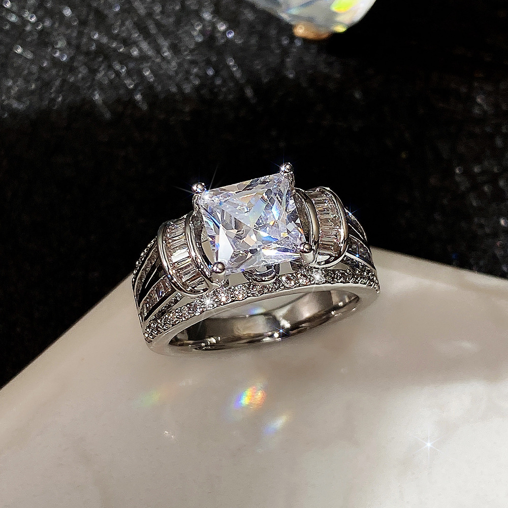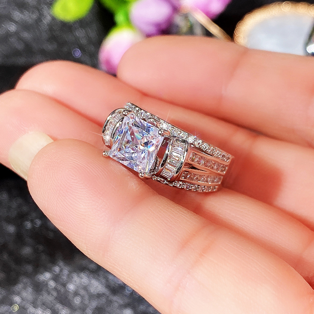 Hot selling new princess square ring European and American hot style inlaid zircon women's jewelry engagement proposal ring