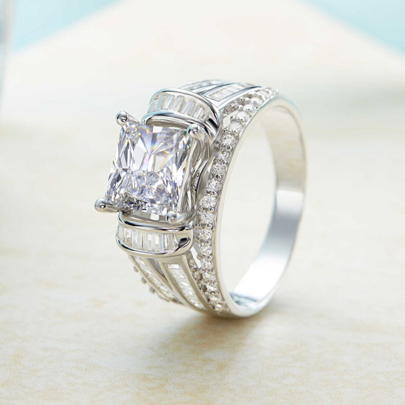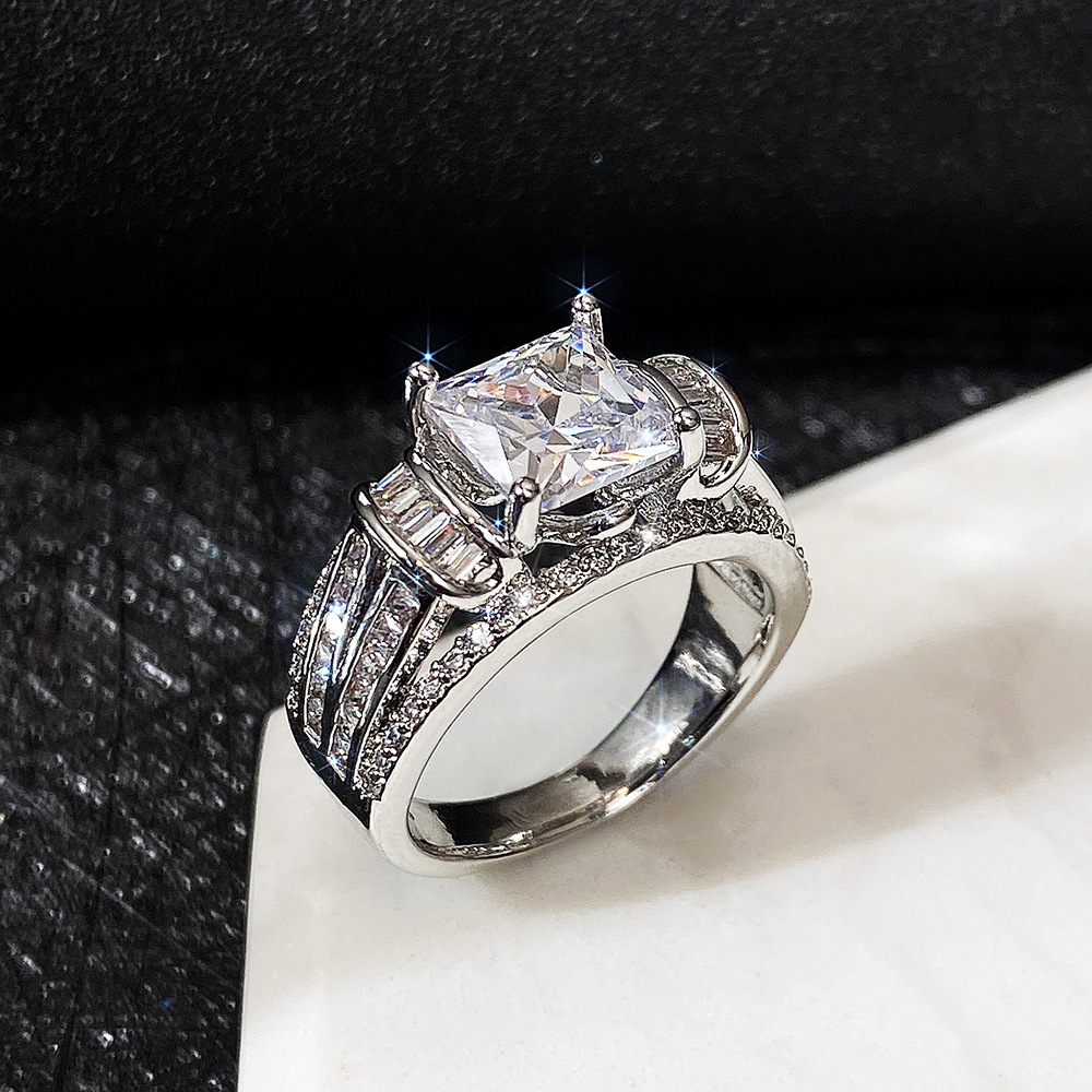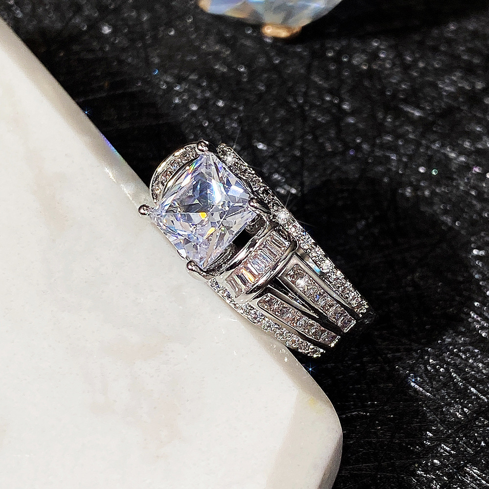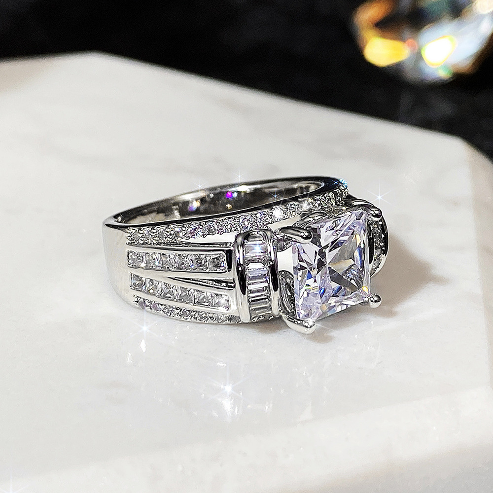 Hot selling new princess square ring European and American hot style inlaid zircon women's jewelry engagement proposal ring