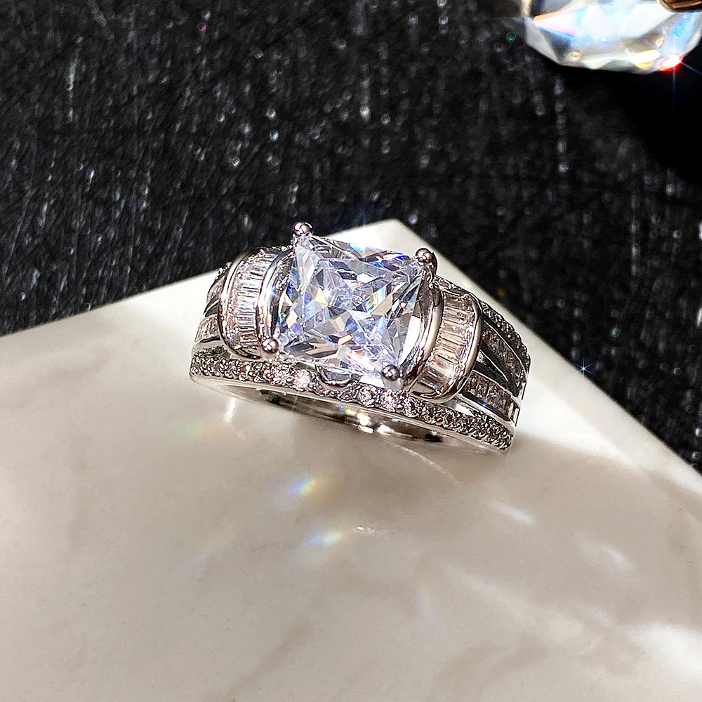 European and American fashion rings domineering square ladies diamond rings creative full diamond micro-inlaid rings wholesale