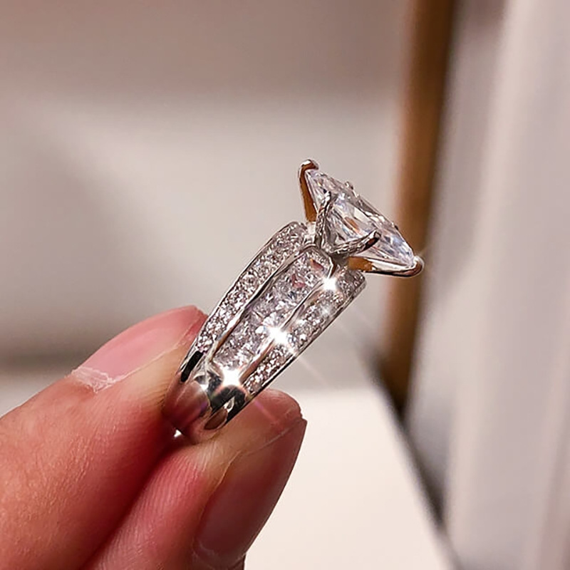 Hot selling new princess square ring European and American hot style inlaid zircon women's jewelry engagement proposal ring