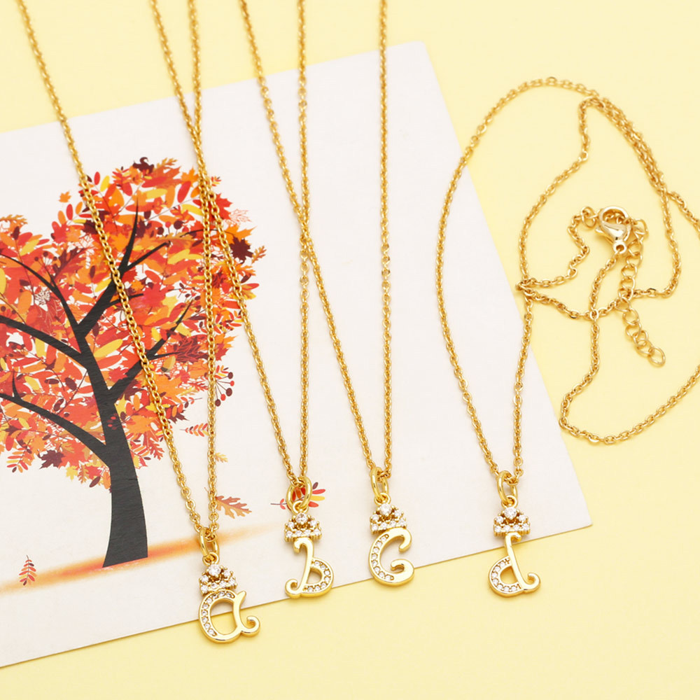 Letter necklace European and American new color zircon necklace with diamond surname English AZ letter necklace nkp25