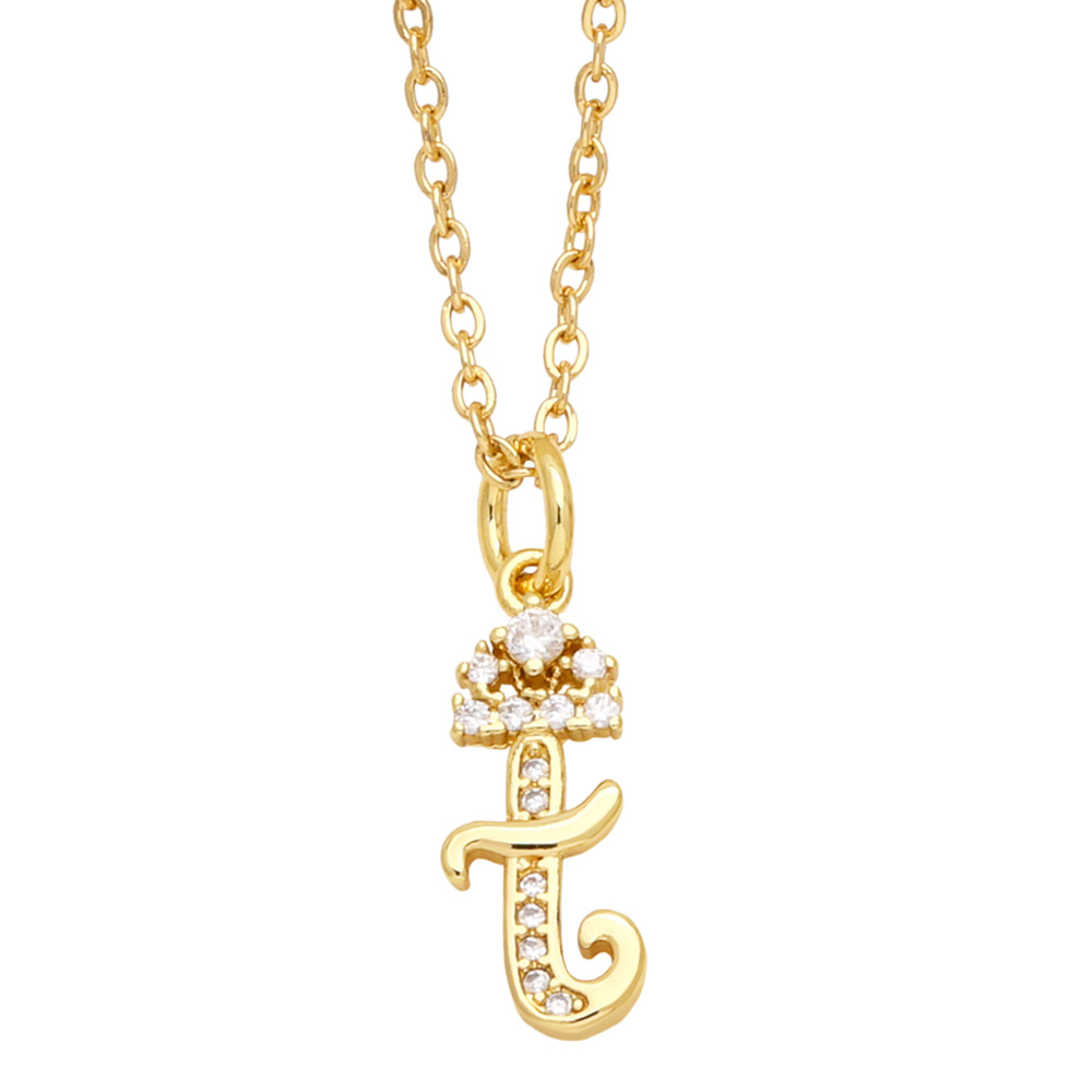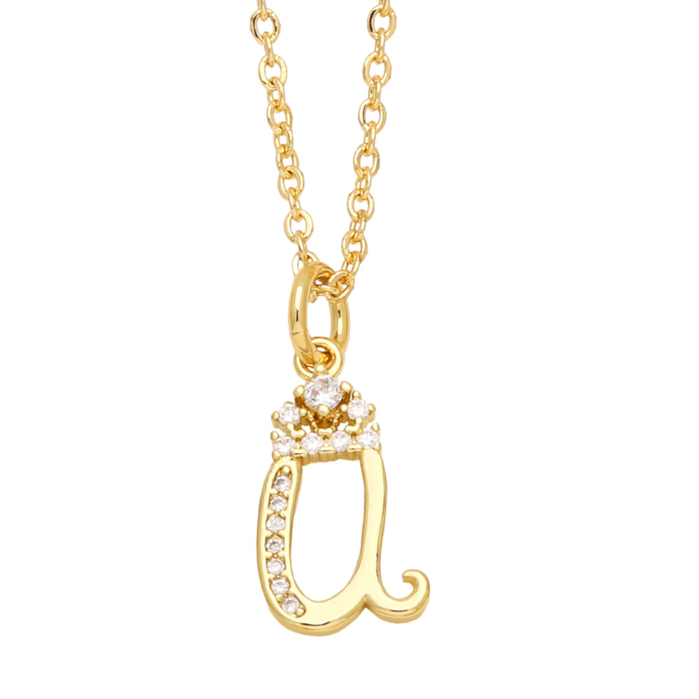 AS jewelry 26 English letters necklace female copper plated real gold inlaid zircon clavicle chain nky42