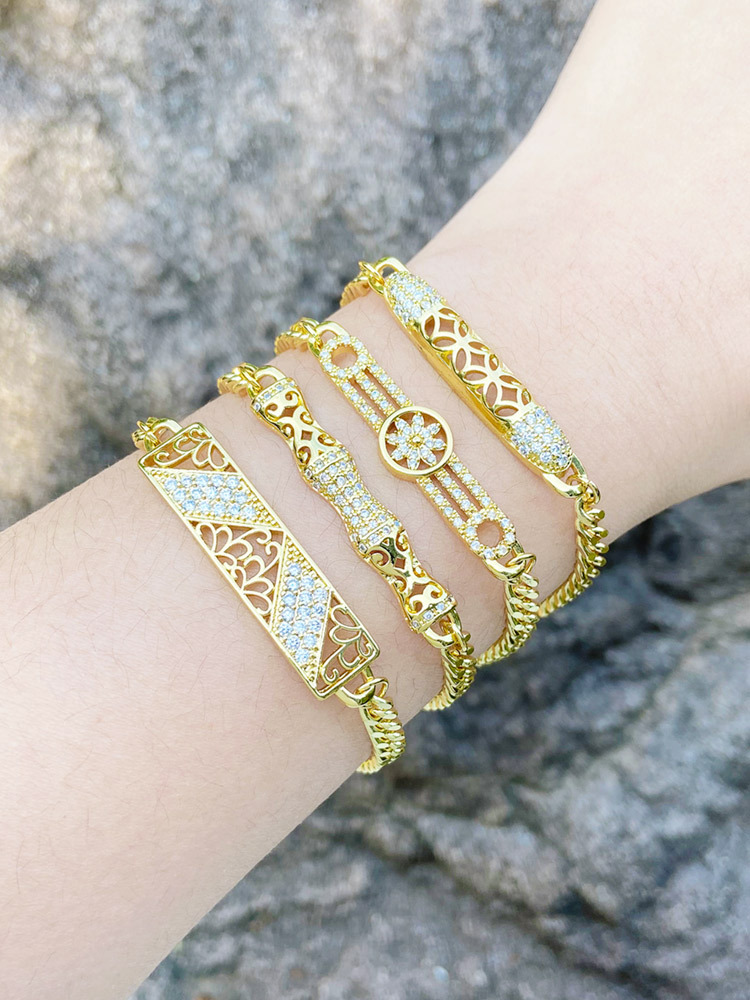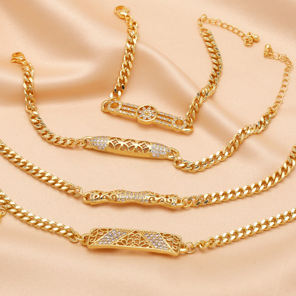 European and American fashion simple Bago chain bracelet niche design inlaid zircon hollow hand jewelry accessories brm09