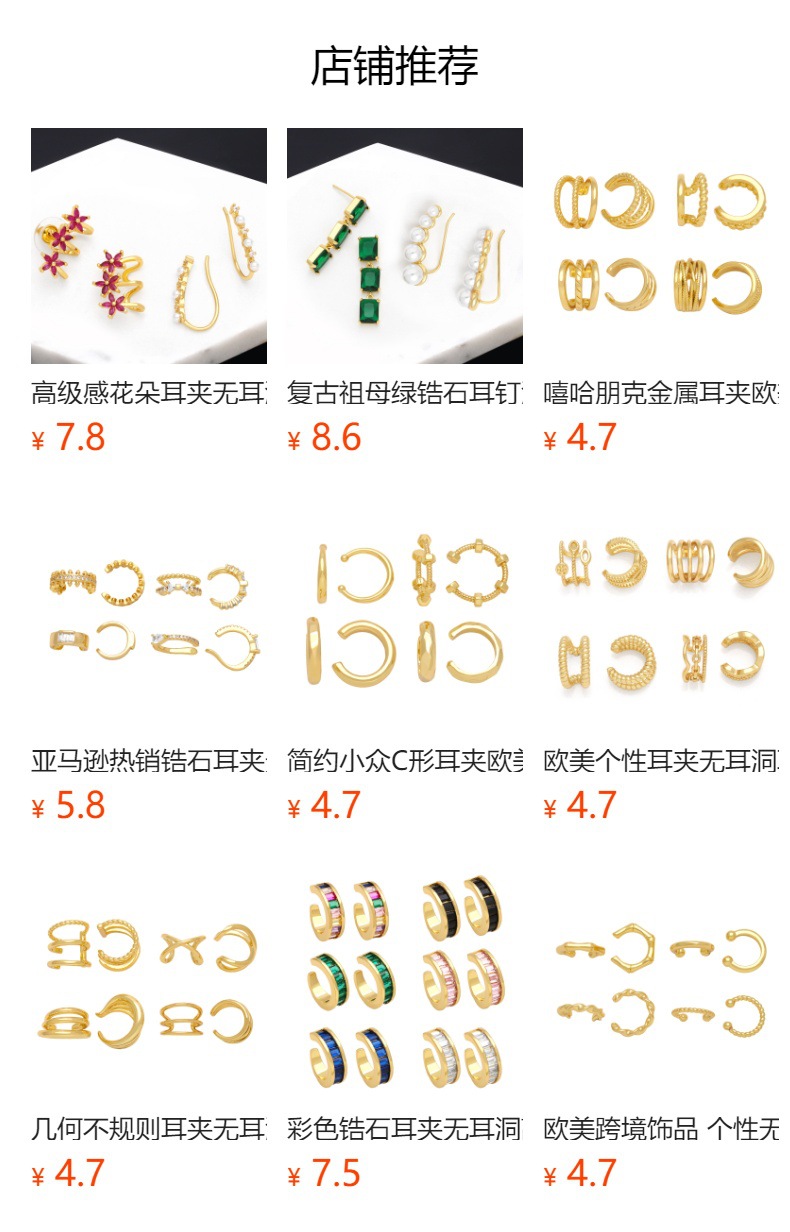 Clearance hot sale European and American zircon ear clip no piercing earrings female simple cool style ear bone clip ert81