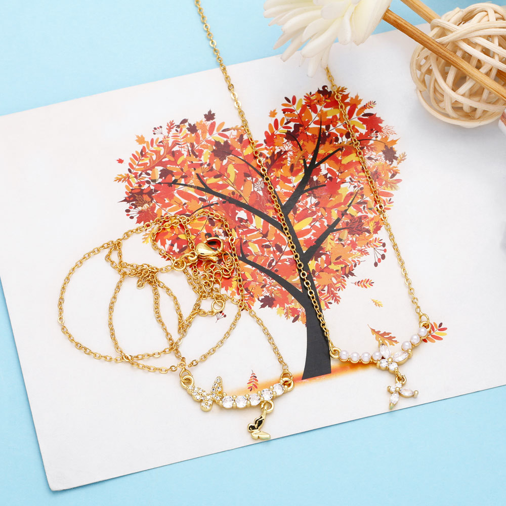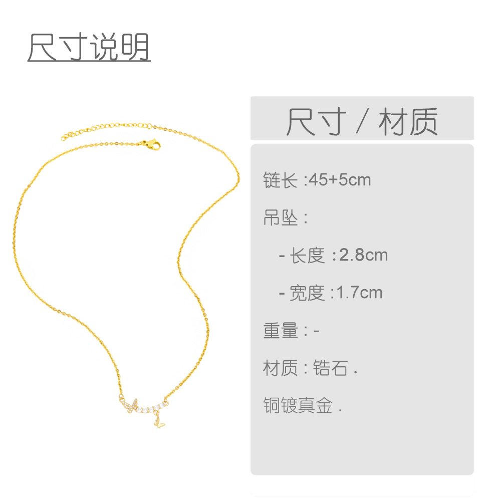 AS jewelry 26 English letters necklace female copper plated real gold inlaid zircon clavicle chain nky42