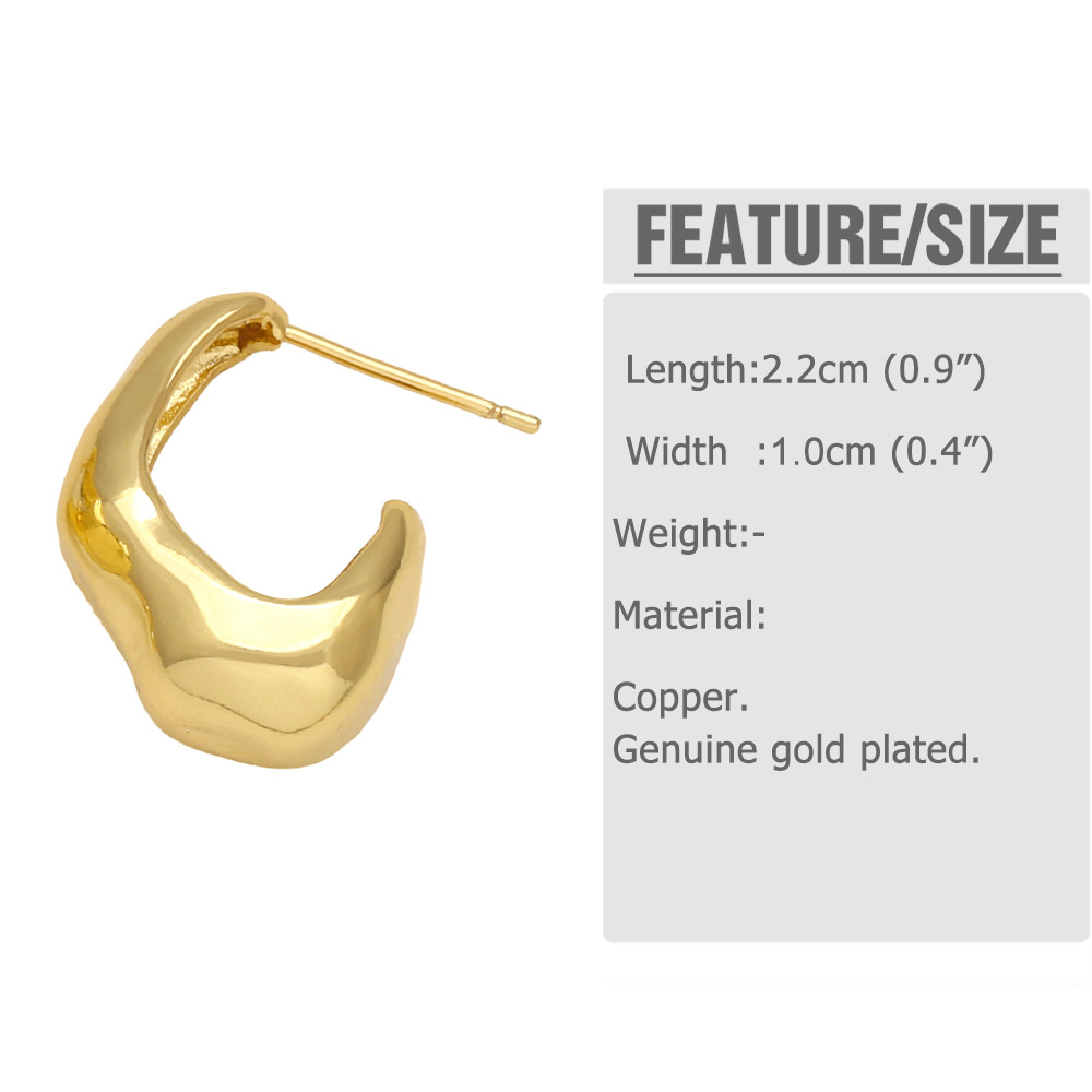 European and American fashion simple fashion irregular earrings niche retro copper plated 18k gold earrings earrings eru01