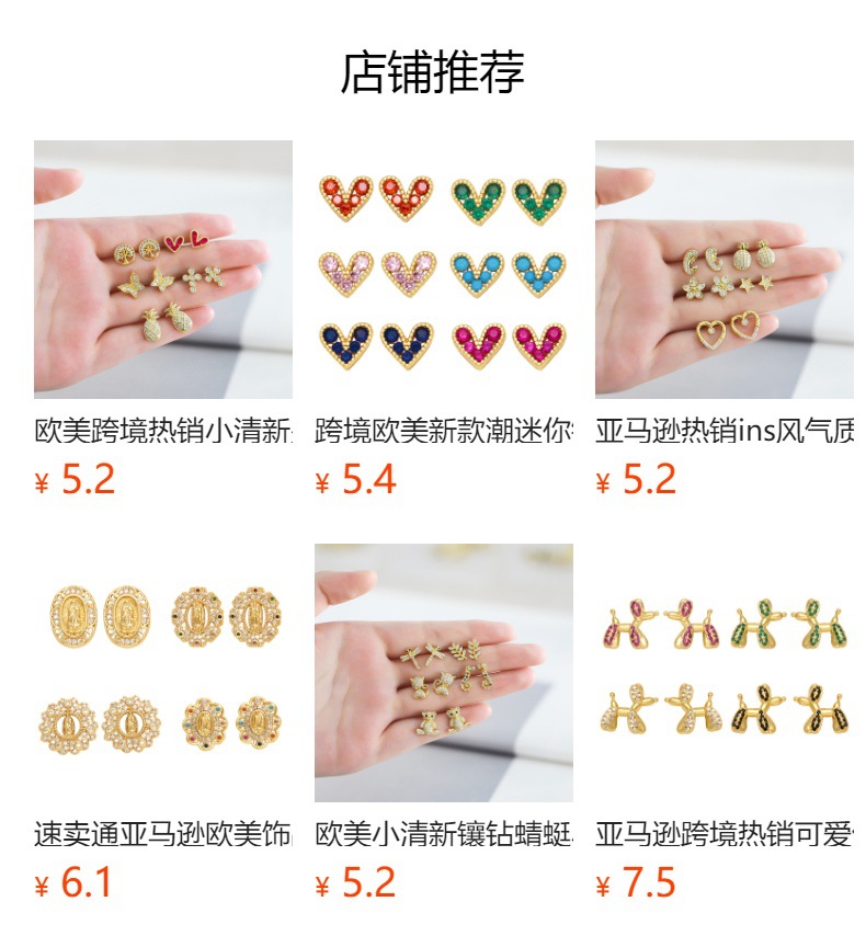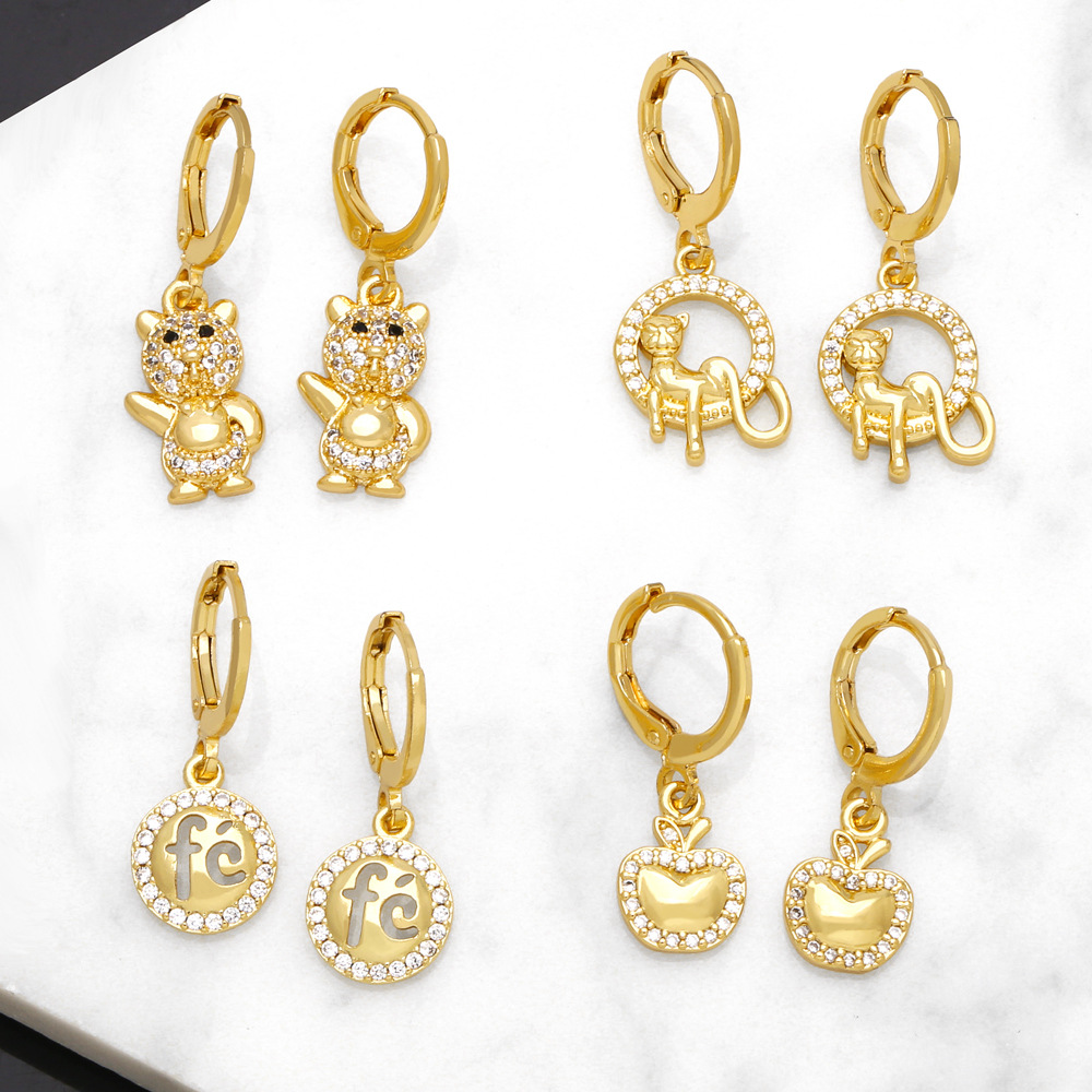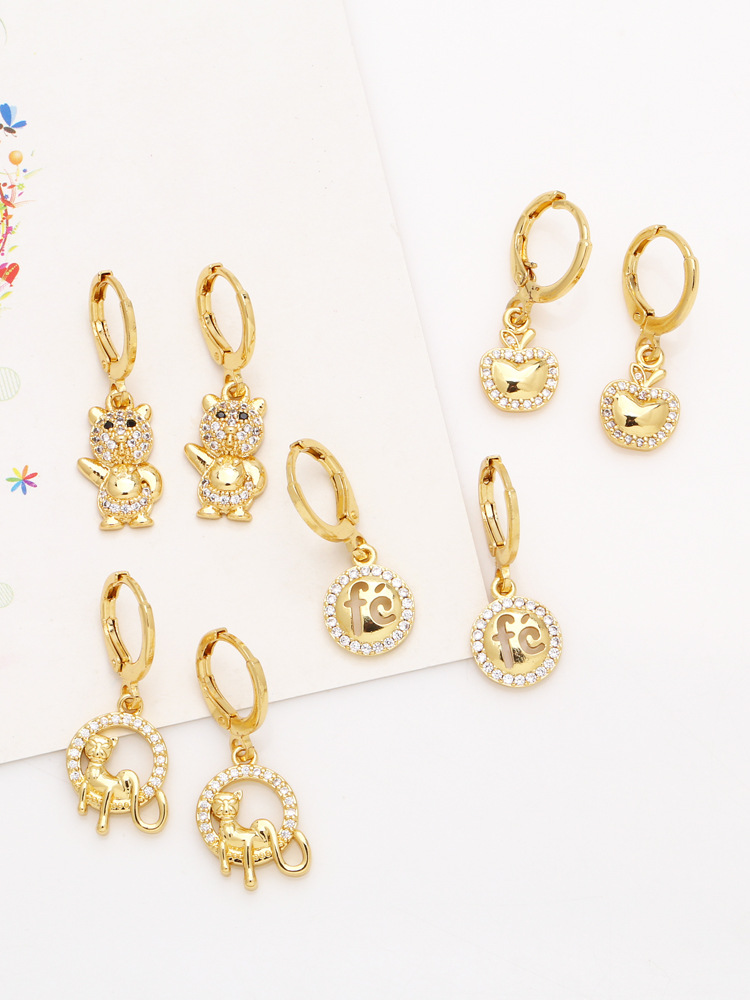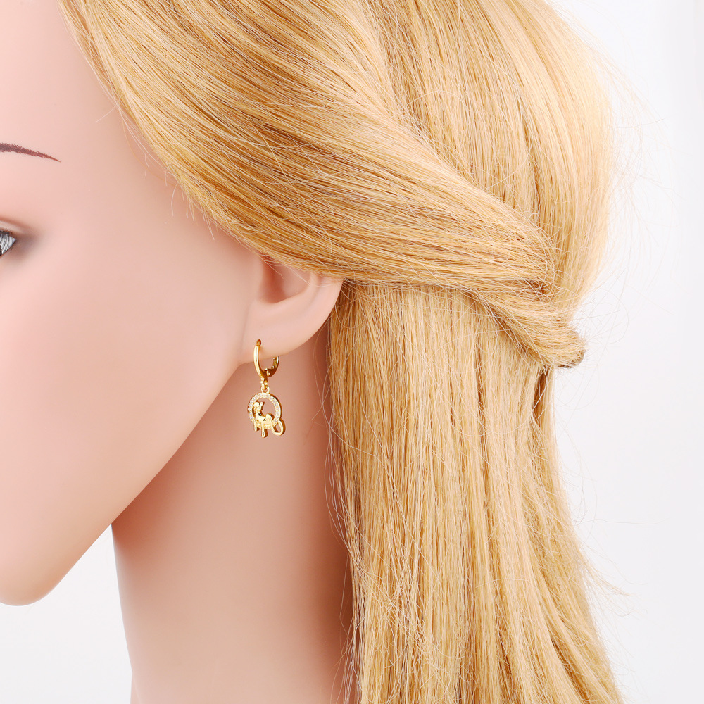 European and American fashion simple hot selling earrings cartoon animal 18k gold diamond earrings metal earrings wholesale eru04