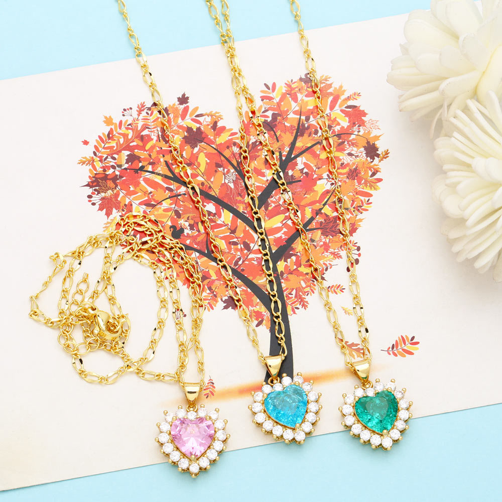 European and American fashion simple love necklace niche high-end micro-inlaid zircon heart-shaped pendant clavicle chain nkn95