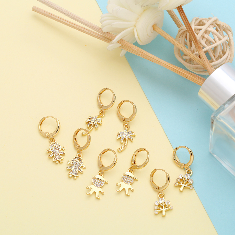European and American fashion simple versatile coconut tree tree of life earrings niche design boy girl earrings female err65