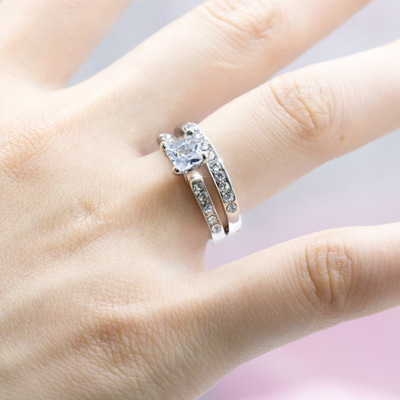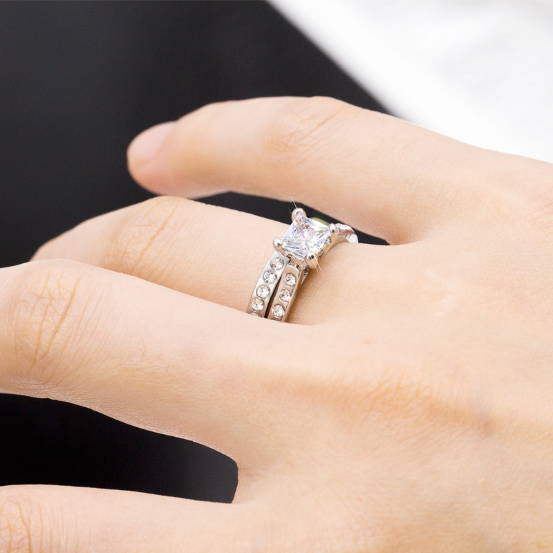 Hot selling new princess square ring European and American hot style inlaid zircon women's jewelry engagement proposal ring