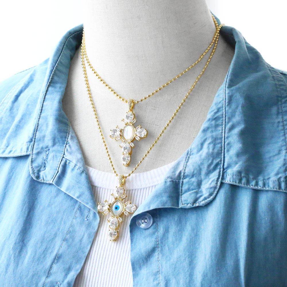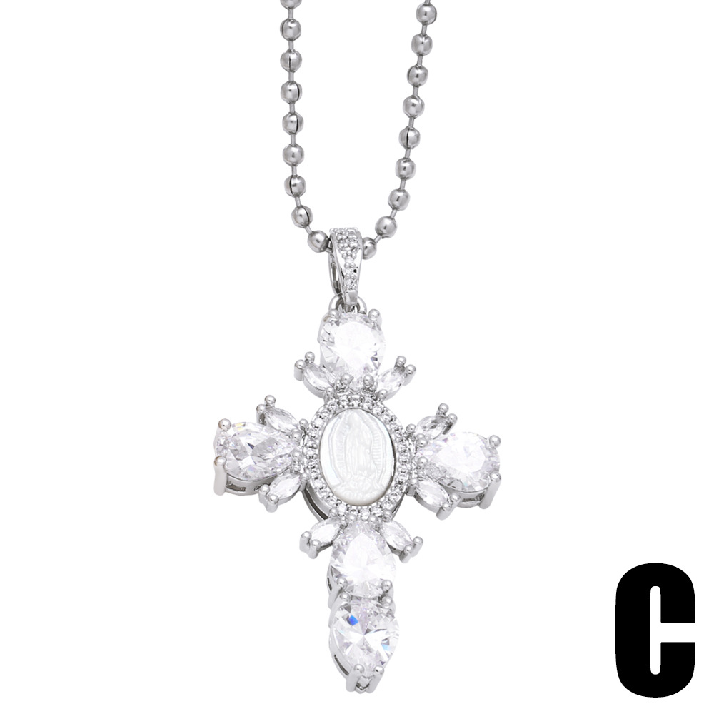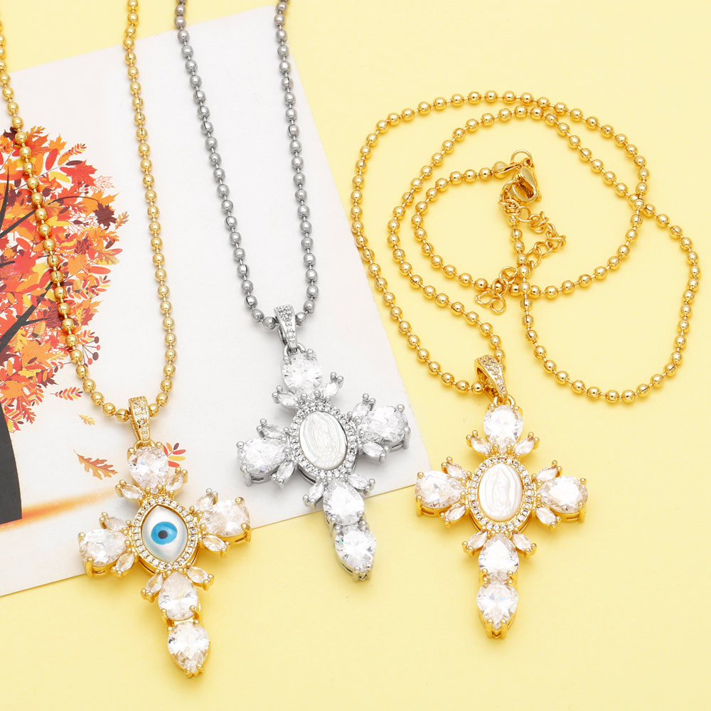 European and American fashion Virgin Mary cross necklace female personality devil eye cross clavicle chain nkb400