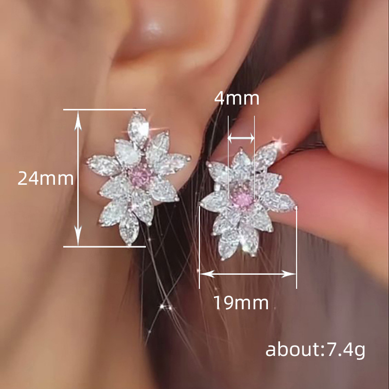 European and American French cherry blossom earrings pink cute gentle temperament earrings elegant all-match light luxury earrings for women