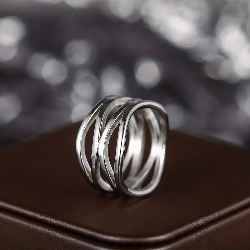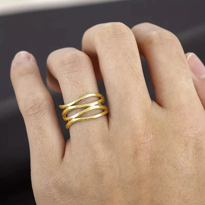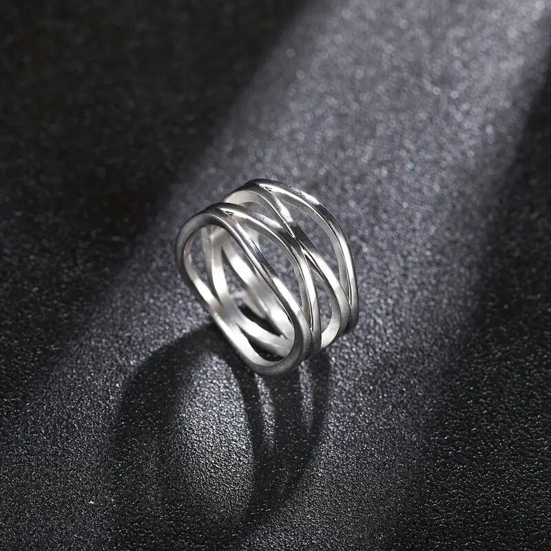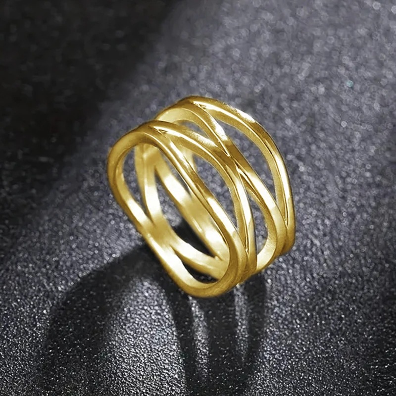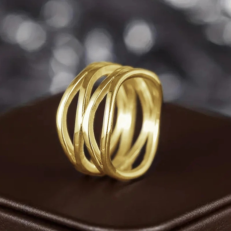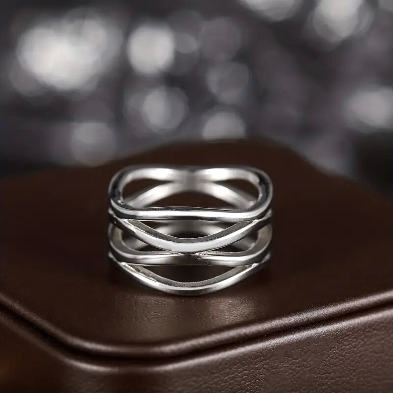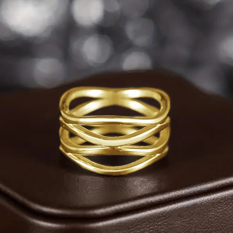 European and American geometric line ring hollow design simple female ring cold style fashion personality ring