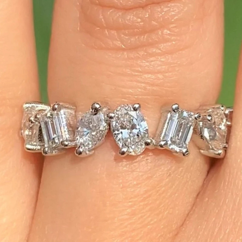 European and American geometric rings for women, fashionable and personalized zircon hot style, zircon row diamond, horse eye oval square
