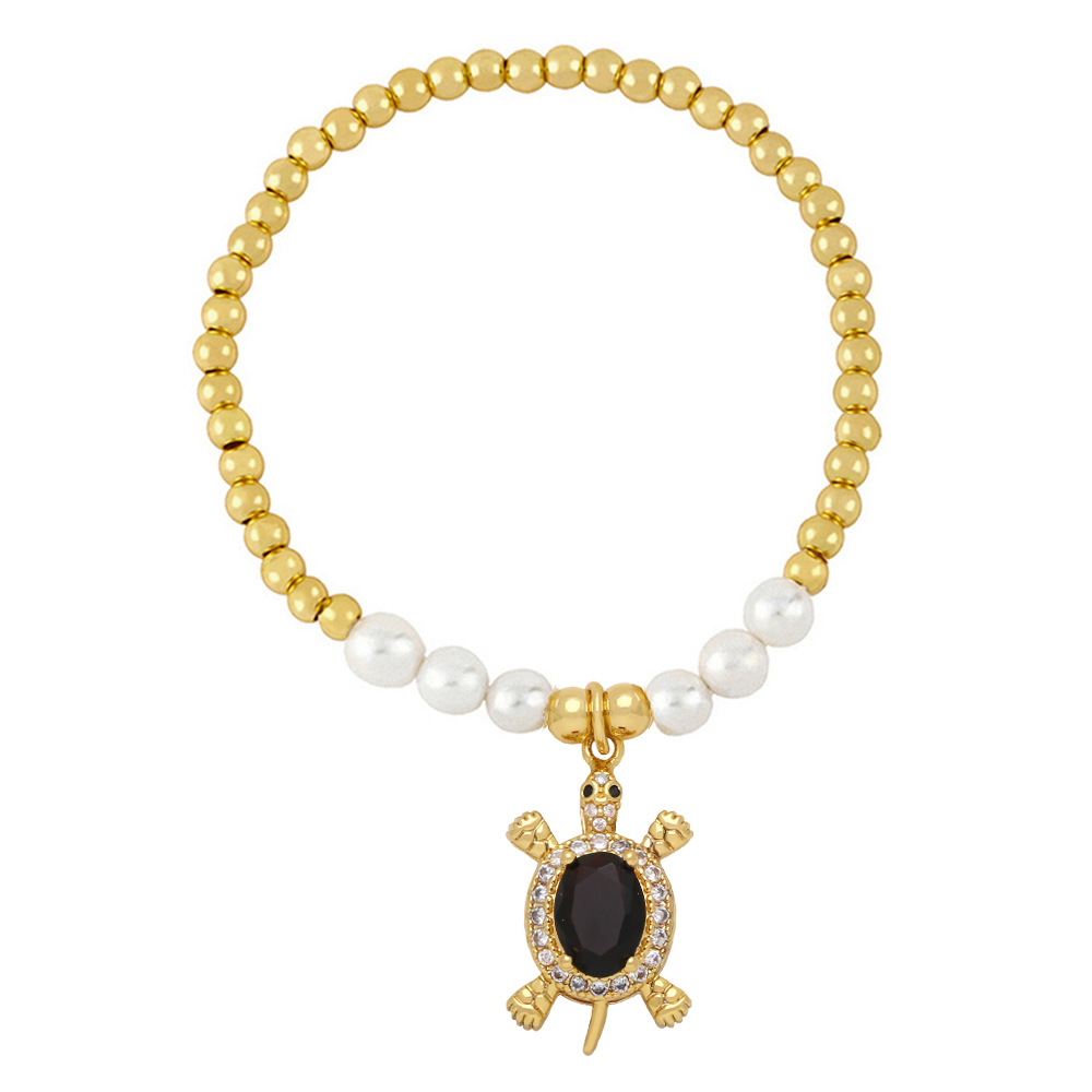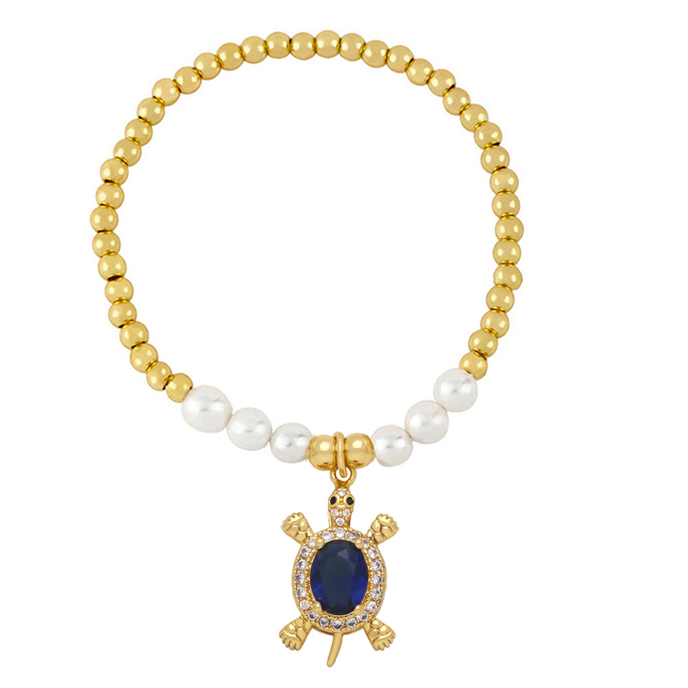 European and American hand jewelry micro-inlaid colored zircon ocean style sea turtle pendant bracelet pearl bracelet bra93