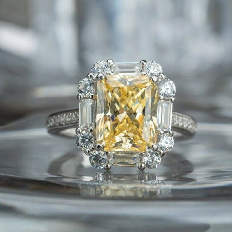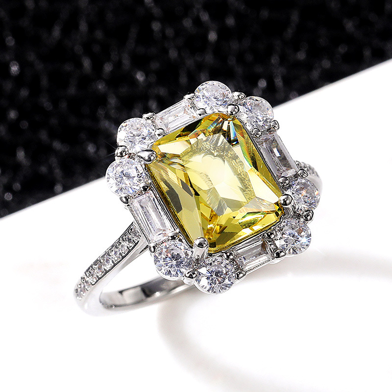 European and American high-end light luxury style ring shiny yellow zircon engagement ring female fashion party jewelry