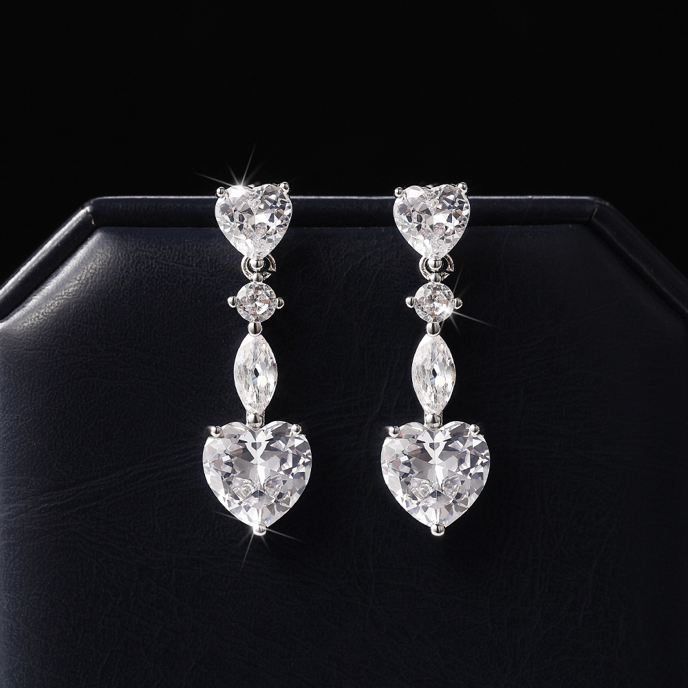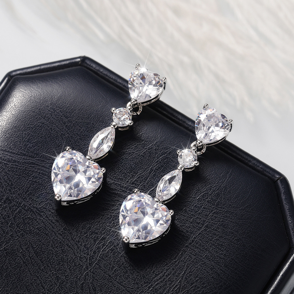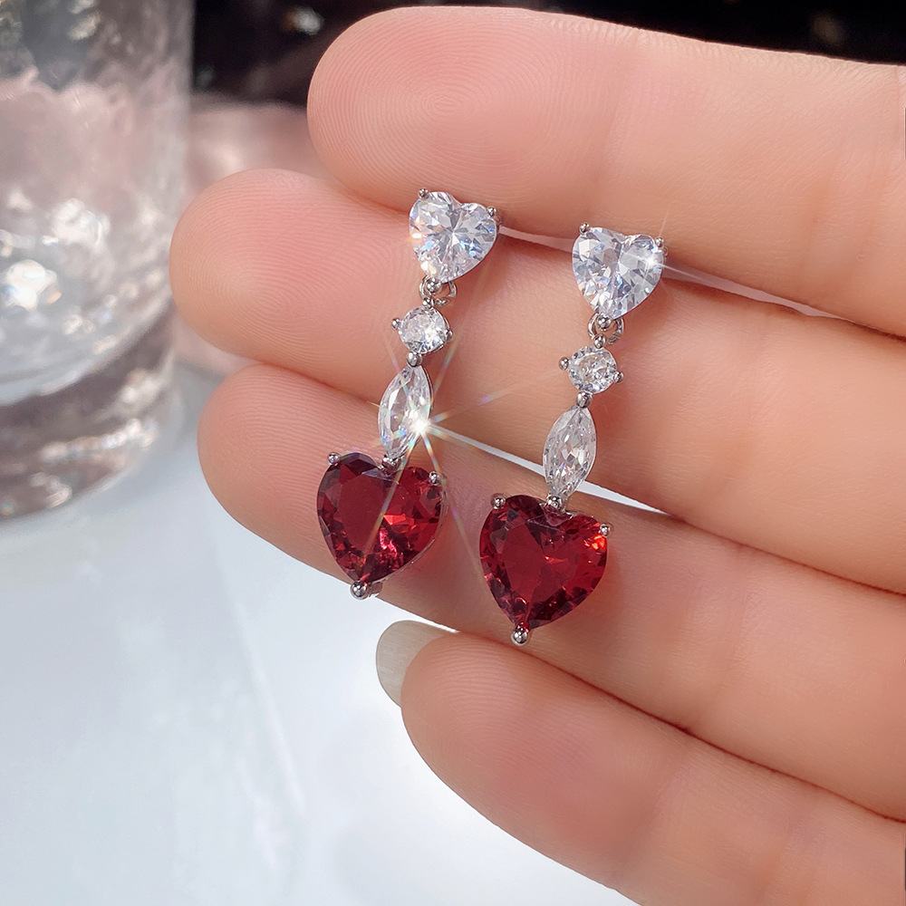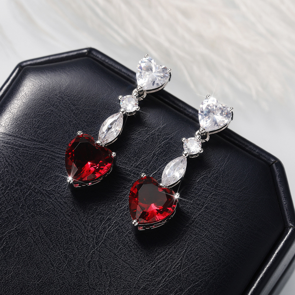 European and American high-end new emerald zircon peach heart earrings inlaid with sea blue heart high-end earrings for women