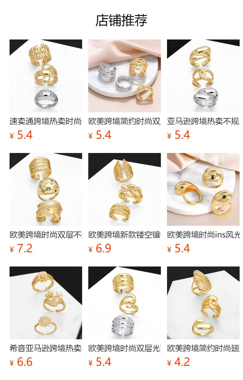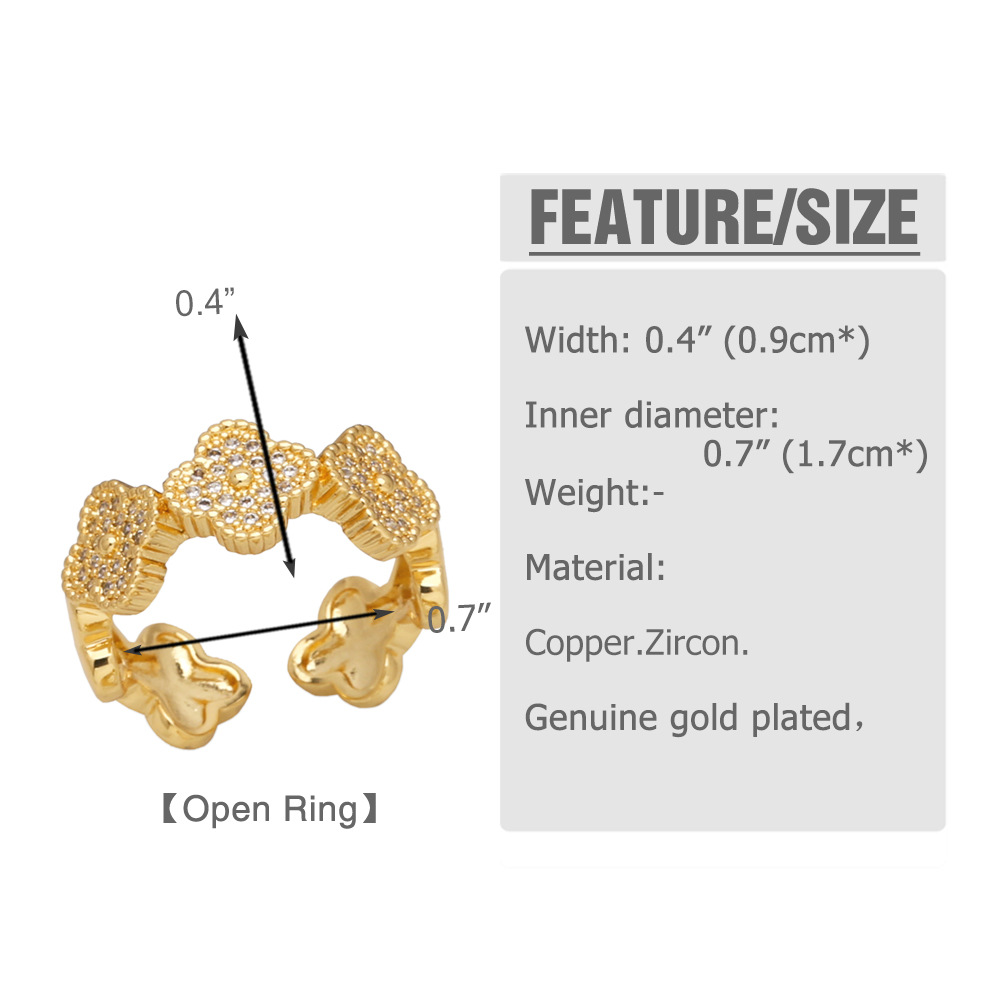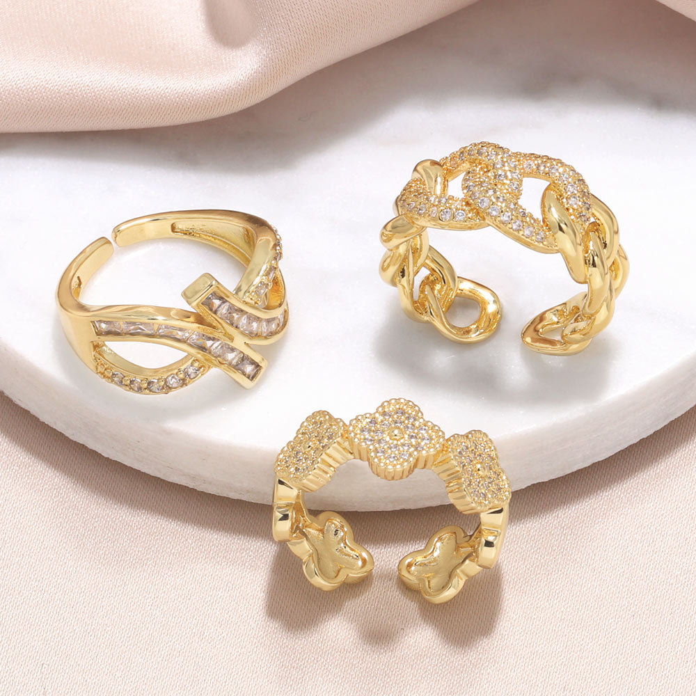 European and American high-end niche design inlaid zircon open ring female fashion gold-plated ring jewelry ris46