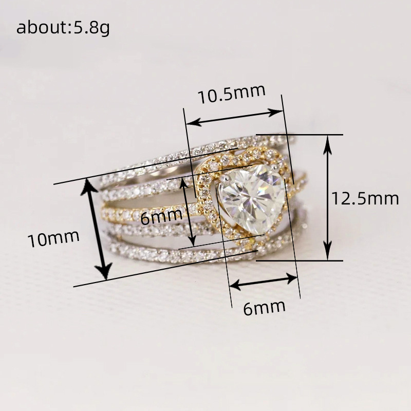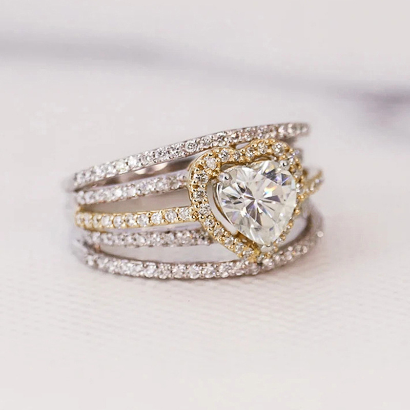 European and American high-end niche heart-shaped ring light luxury heavy heart-shaped multi-layer ring line two-color ring