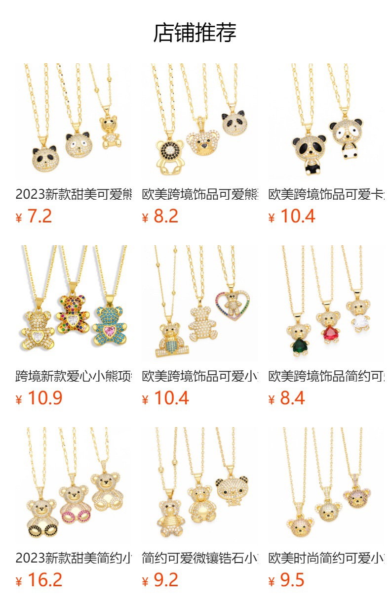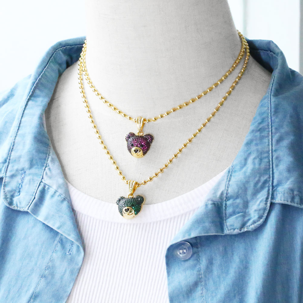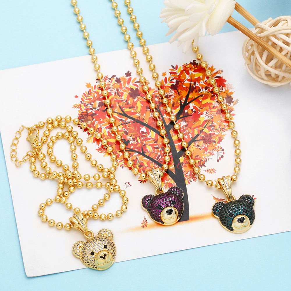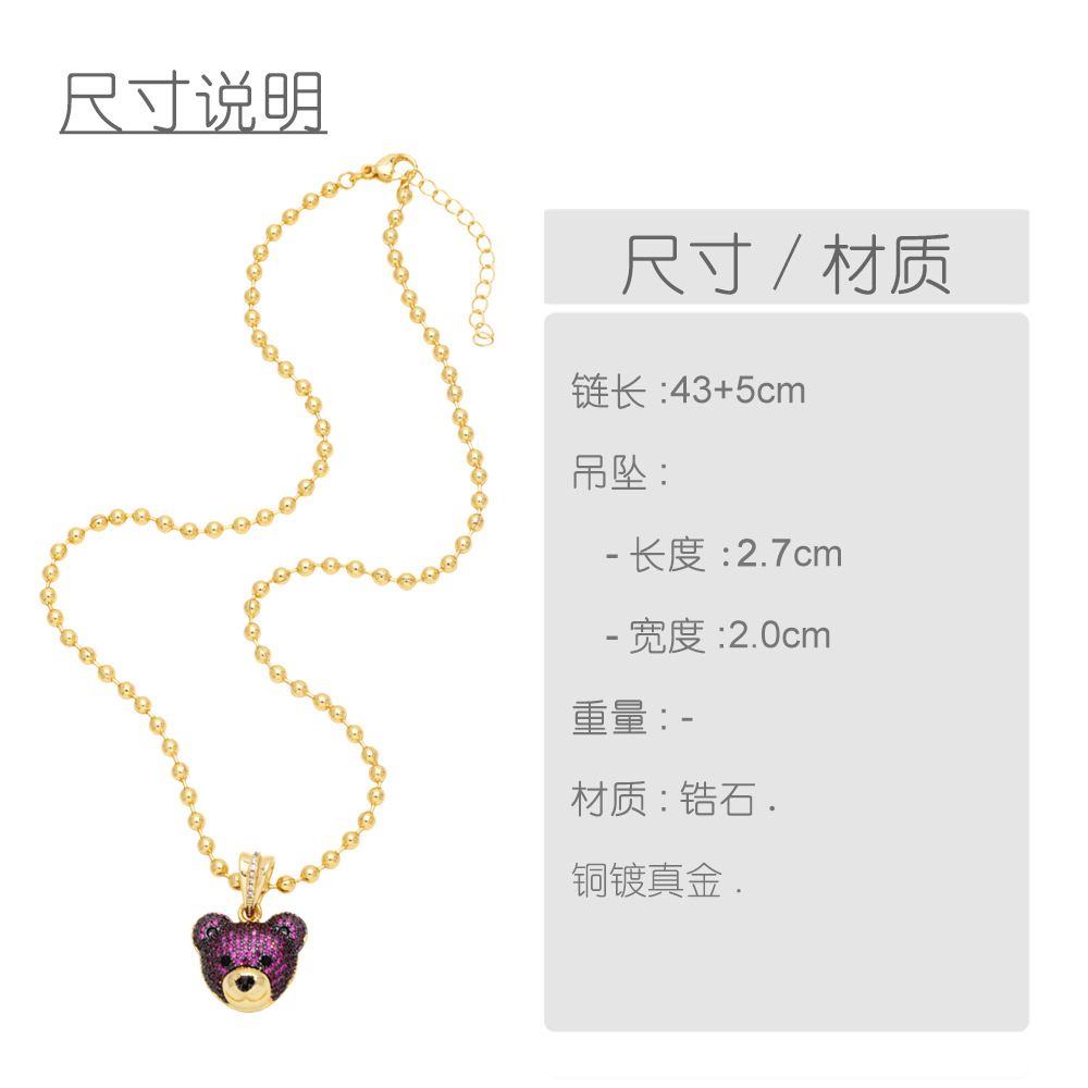 European and American hip-hop bear necklace female personality full diamond cute pendant temperament versatile clavicle chain nkv48