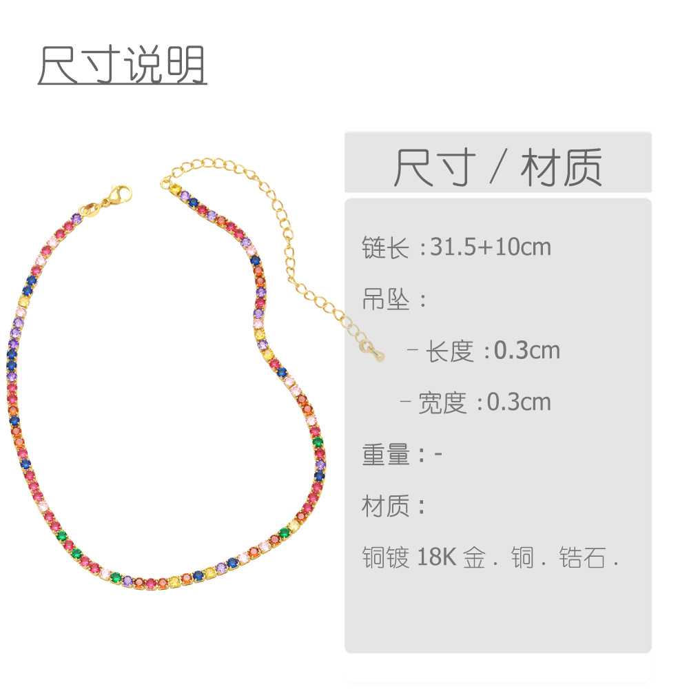 European and American hip-hop colored zircon a row of necklaces style versatile accessories colored diamond tennis chain clavicle chain nkb461