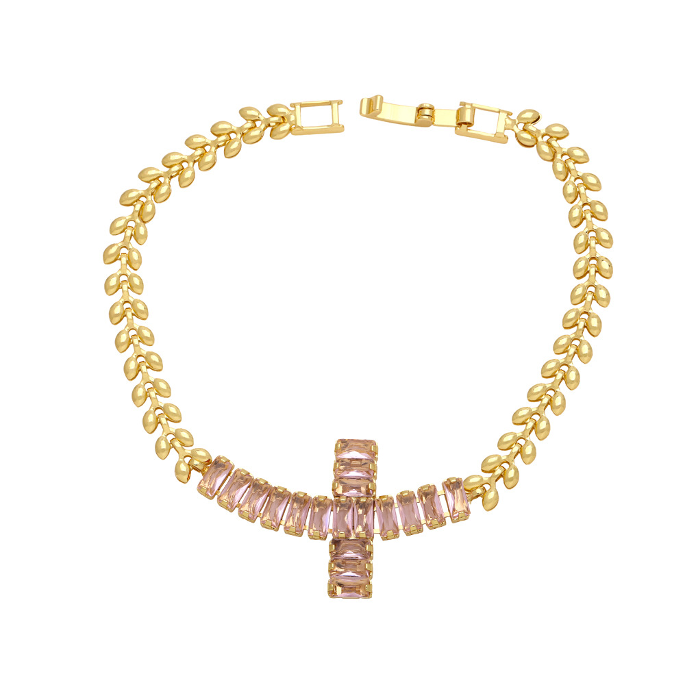 European and American hip-hop jewelry fashion personality inlaid colored zircon cross bracelet temperament bracelet female brc13