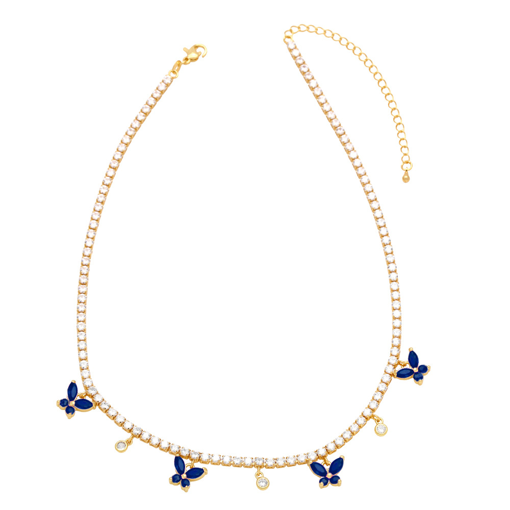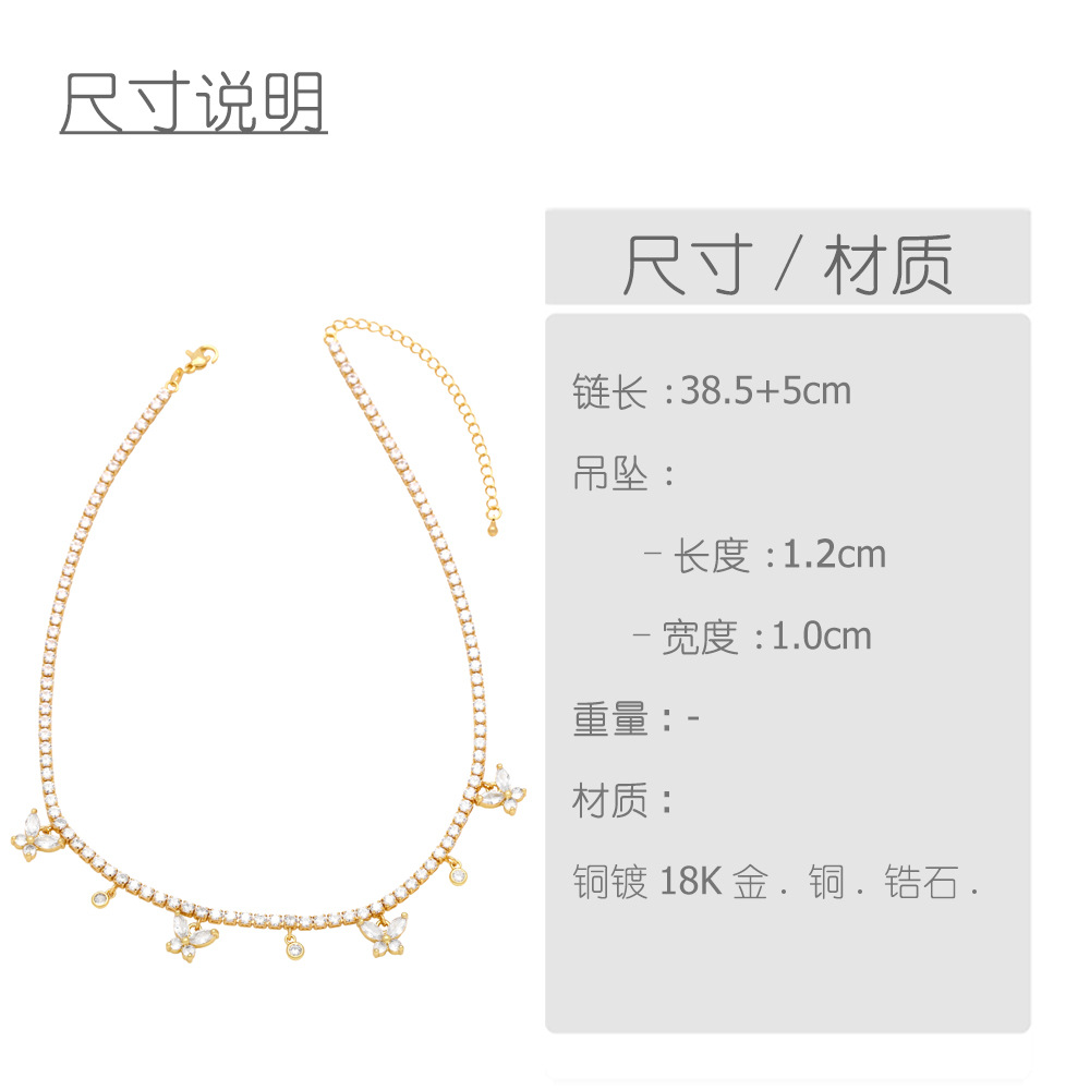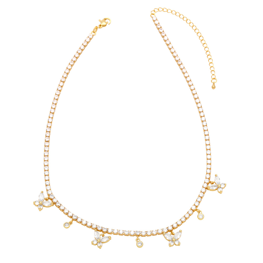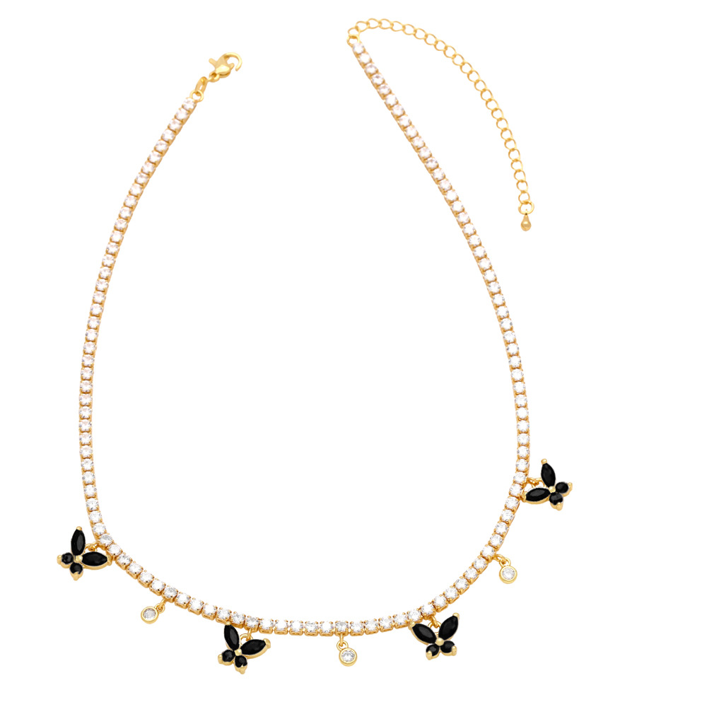 European and American hip-hop jewelry full diamond butterfly clavicle necklace female niche light luxury high-end zircon necklace nkb026