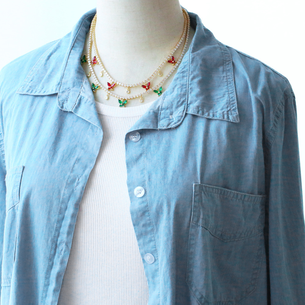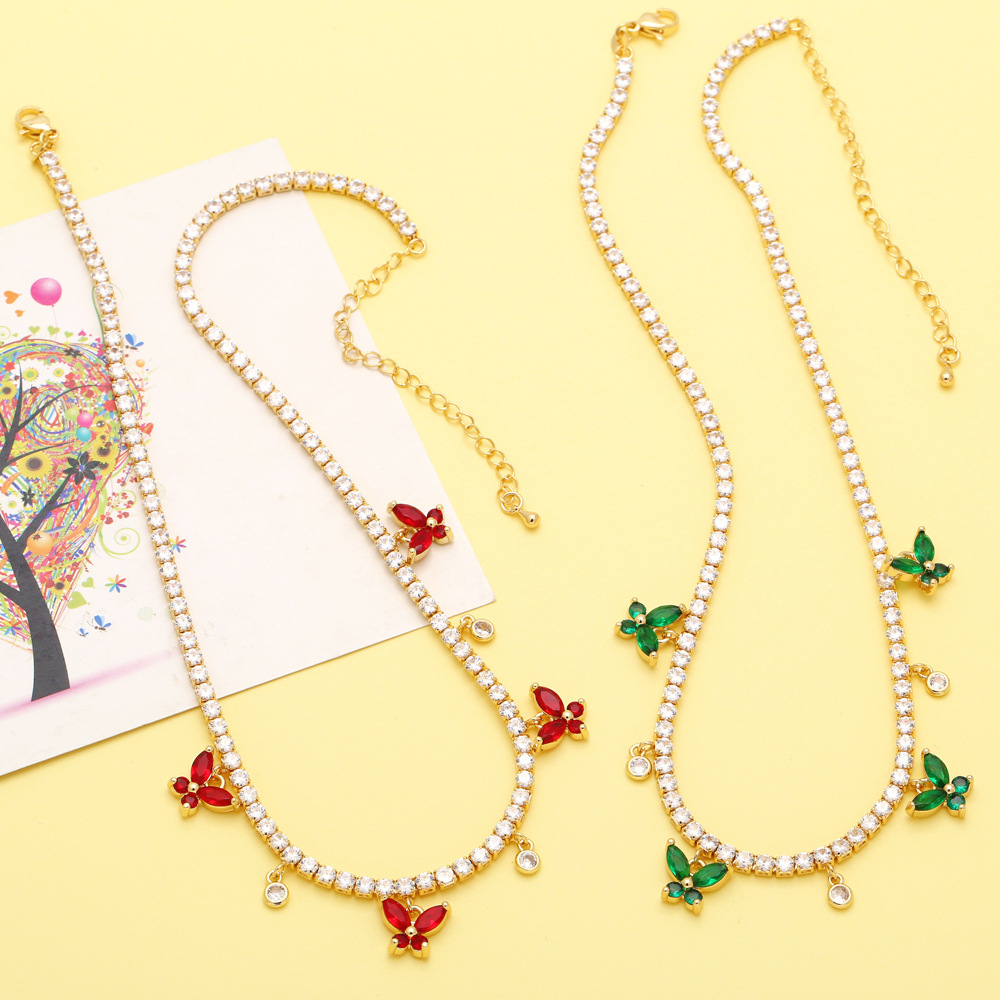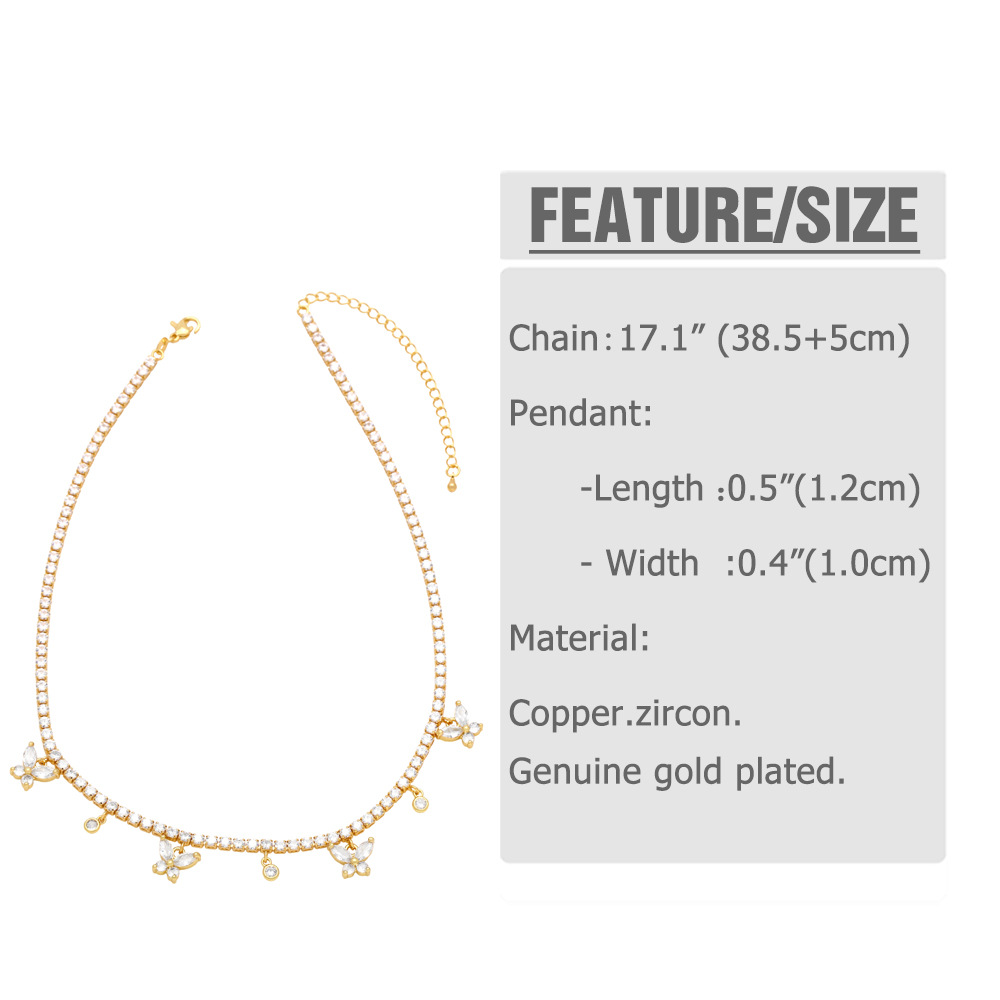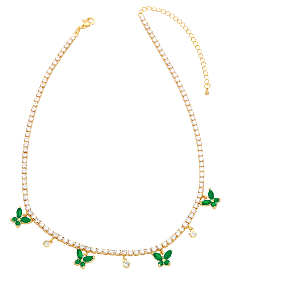 European and American hip-hop jewelry full diamond butterfly clavicle necklace female niche light luxury high-end zircon necklace nkb026