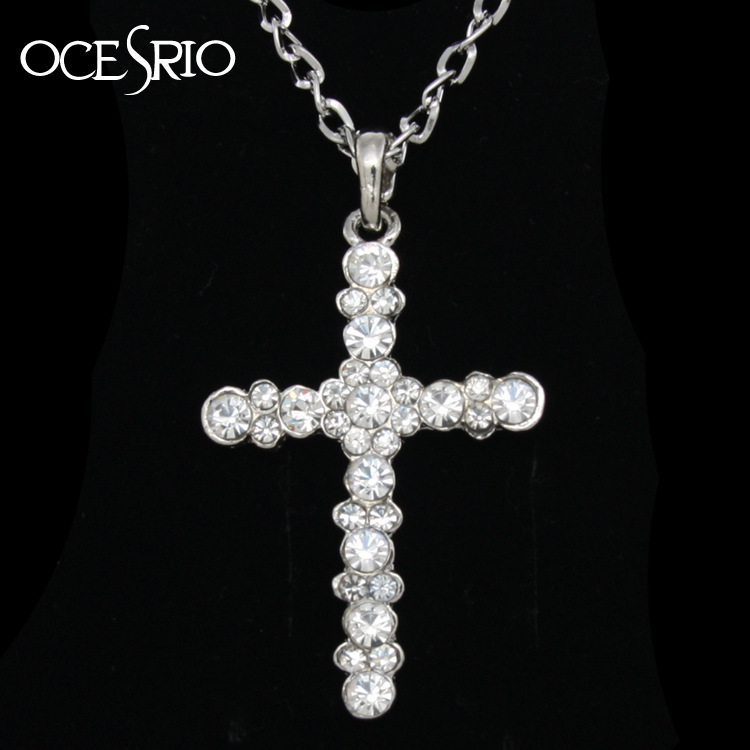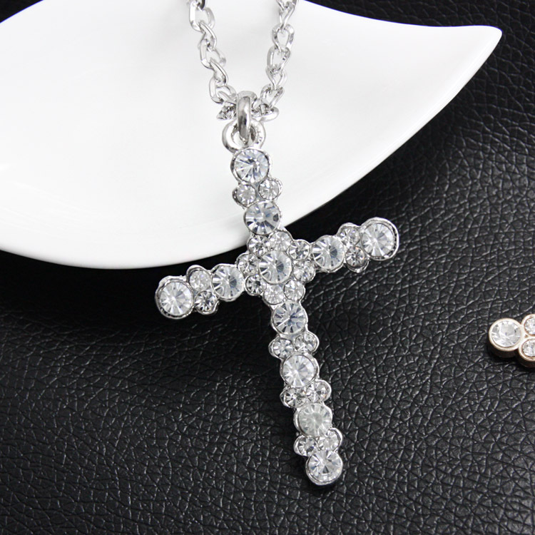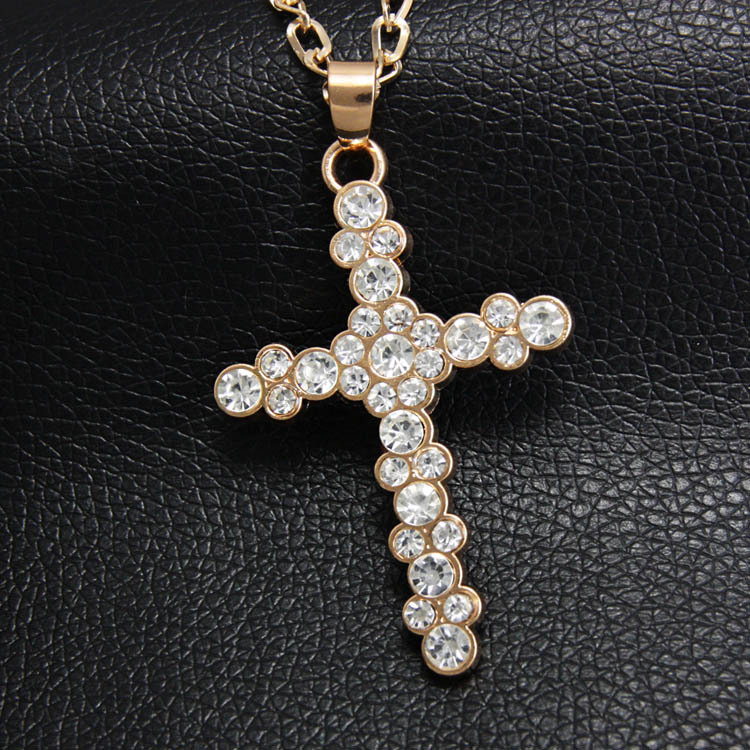 European and American hip-hop jewelry women's hip-hop diamond cross pendant necklace clavicle chain jewelry wholesale nkm78