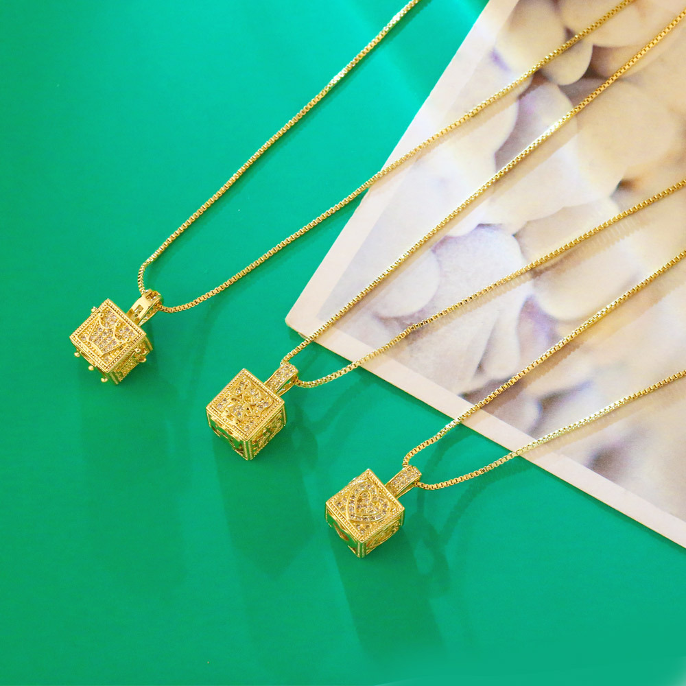 European and American hip-hop necklace hot selling micro-inlaid zircon dice cube crown butterfly pendant necklace nkz06
