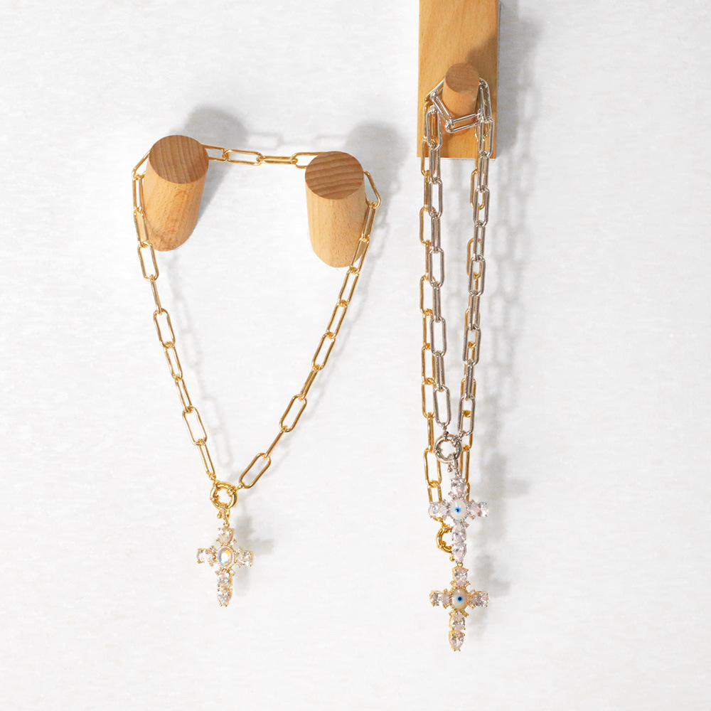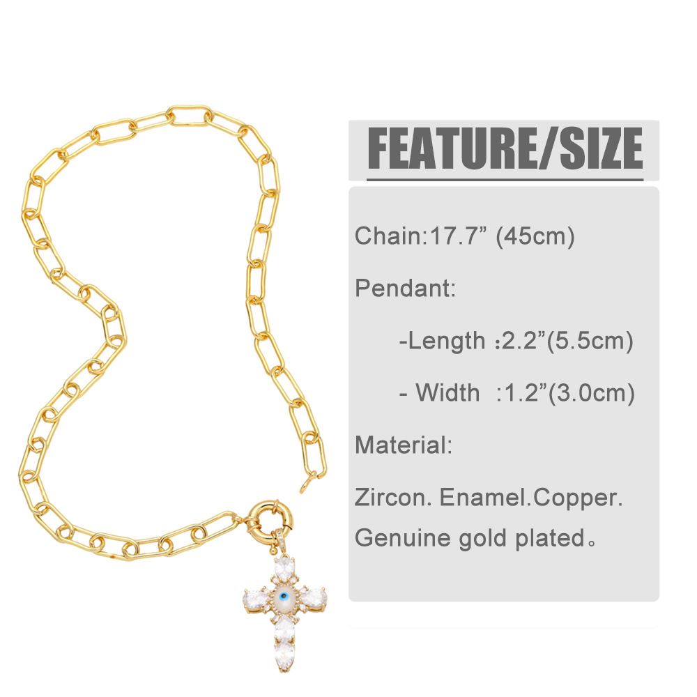 European and American hip-hop personality eye cross pendant thick chain necklace unisex clavicle chain nkb222