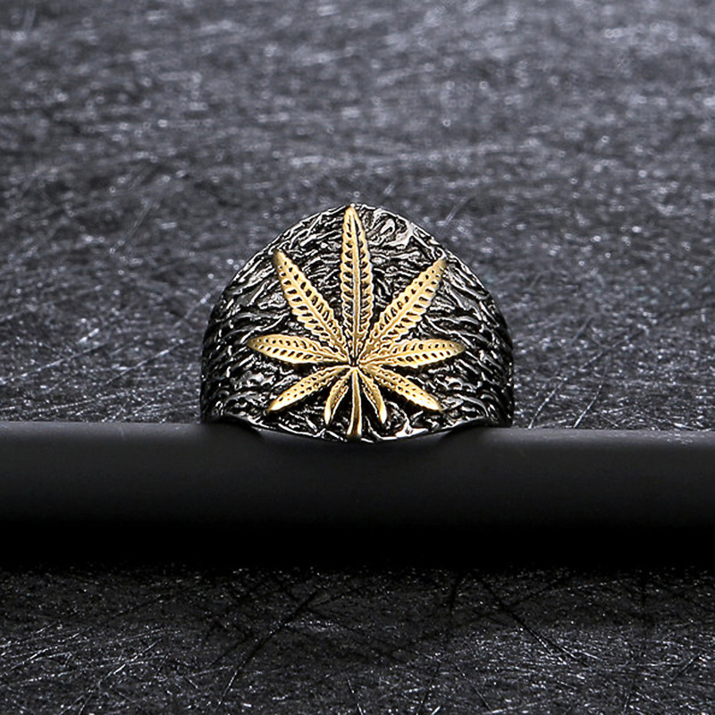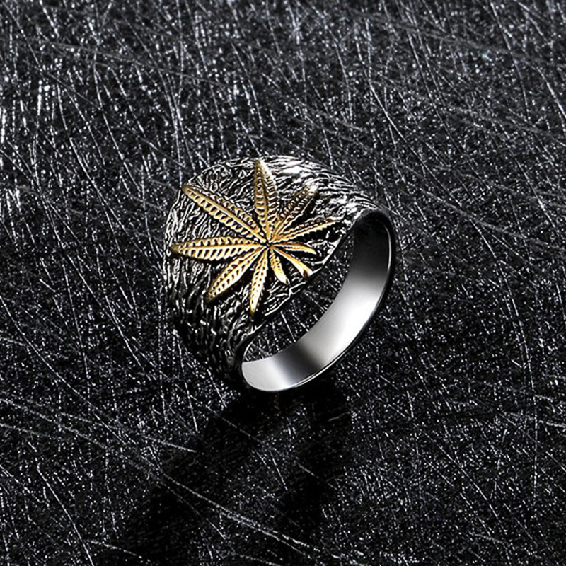 European and American hip-hop retro men's ring copper plated two-color leaf-shaped maple leaf ring personality street trend ring hot sale