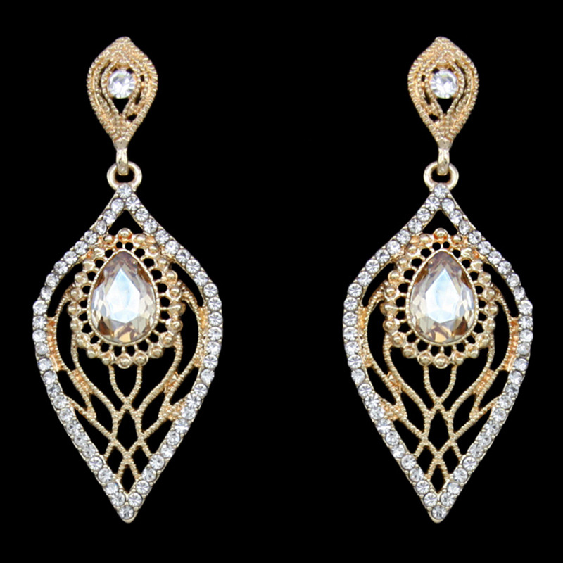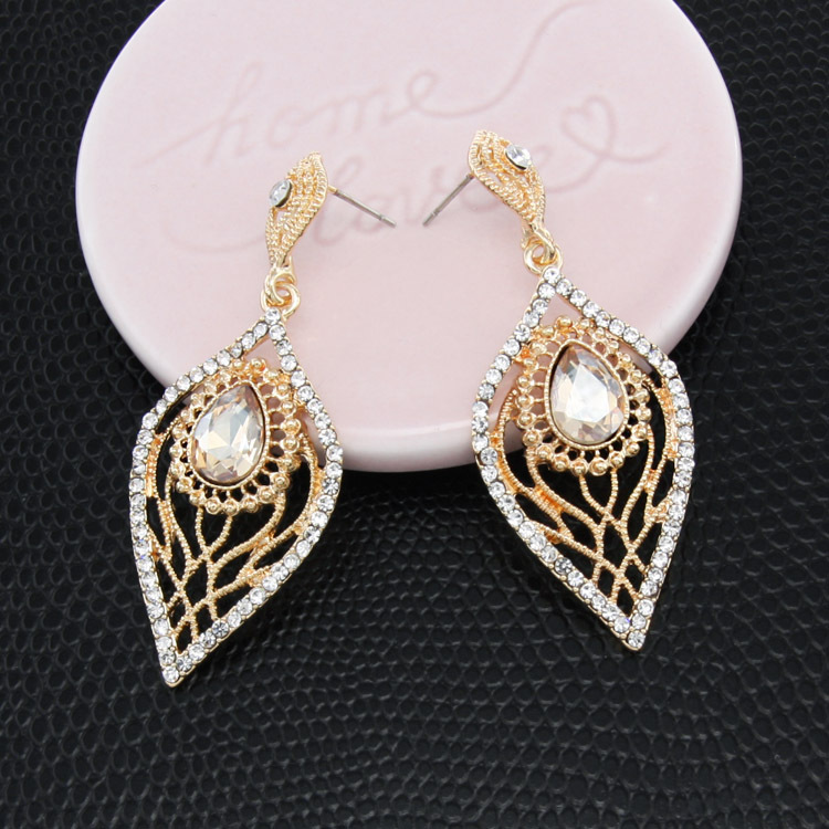 European and American hot-selling bridal wedding earrings for women inlaid with bricks and gold-plated water drop earrings erh58