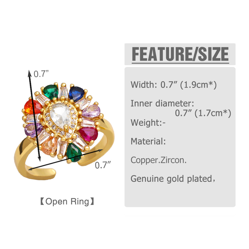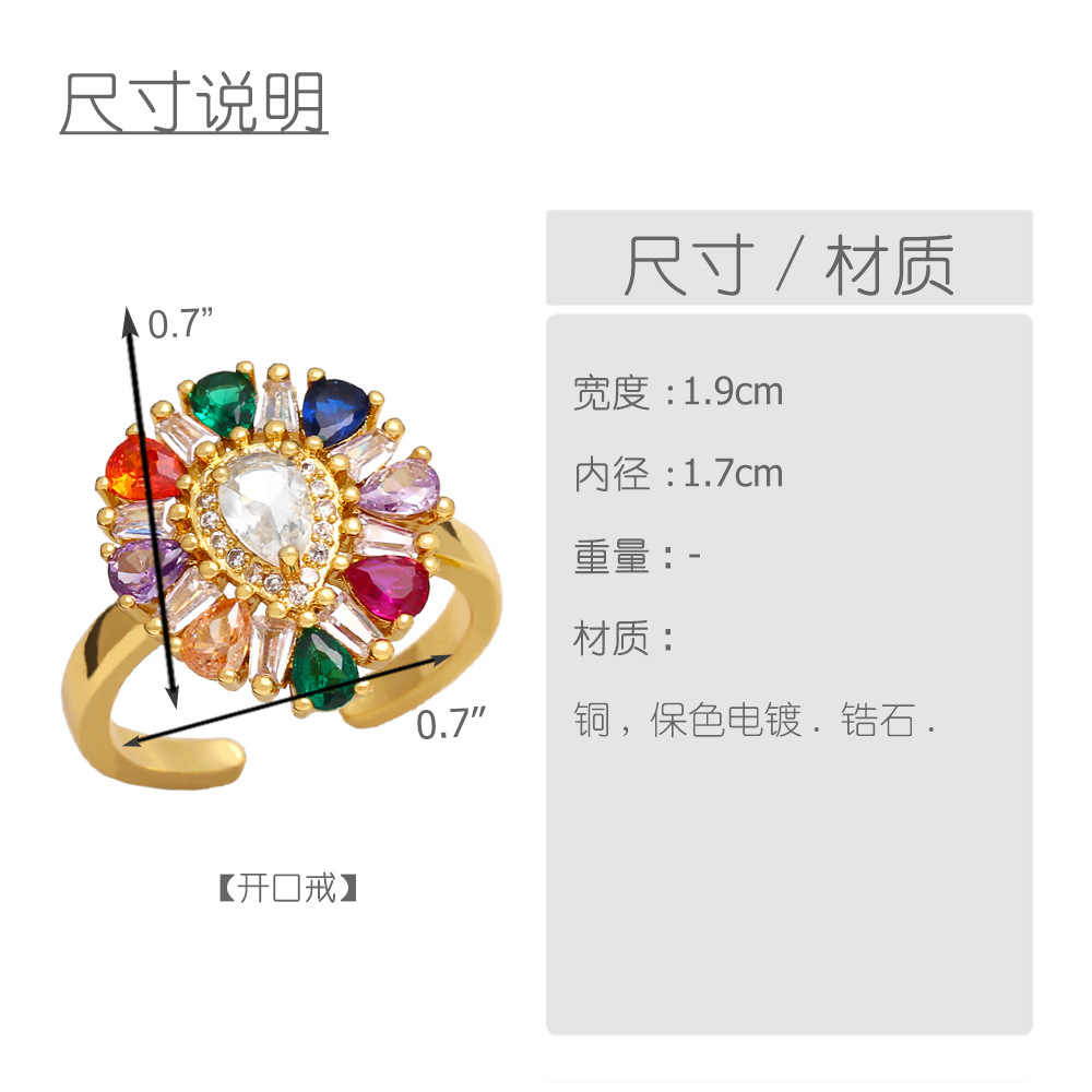 European and American hot selling colored zircon ring female high-end niche design love open ring rij17
