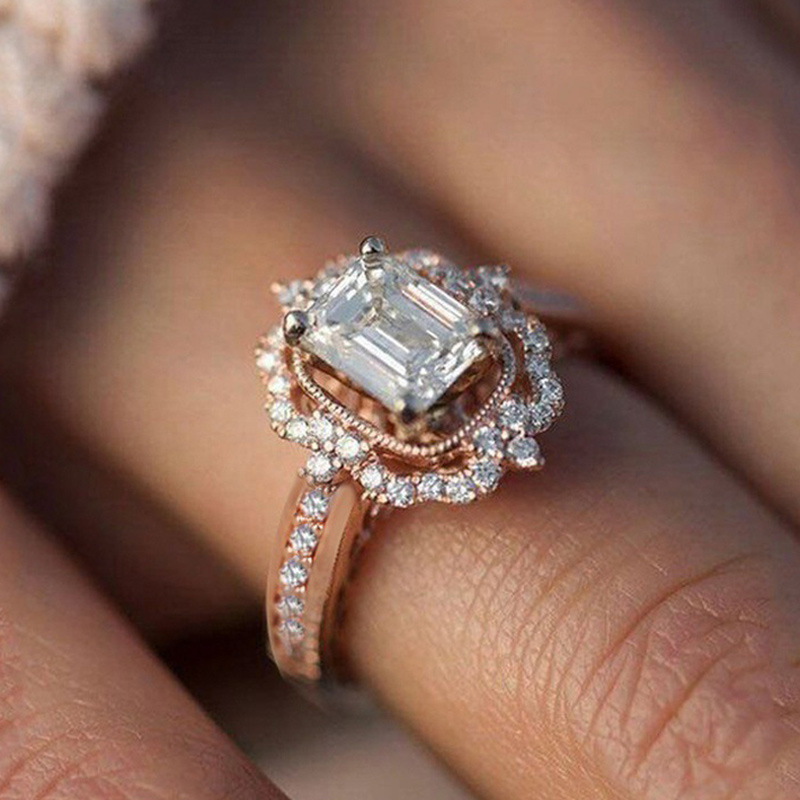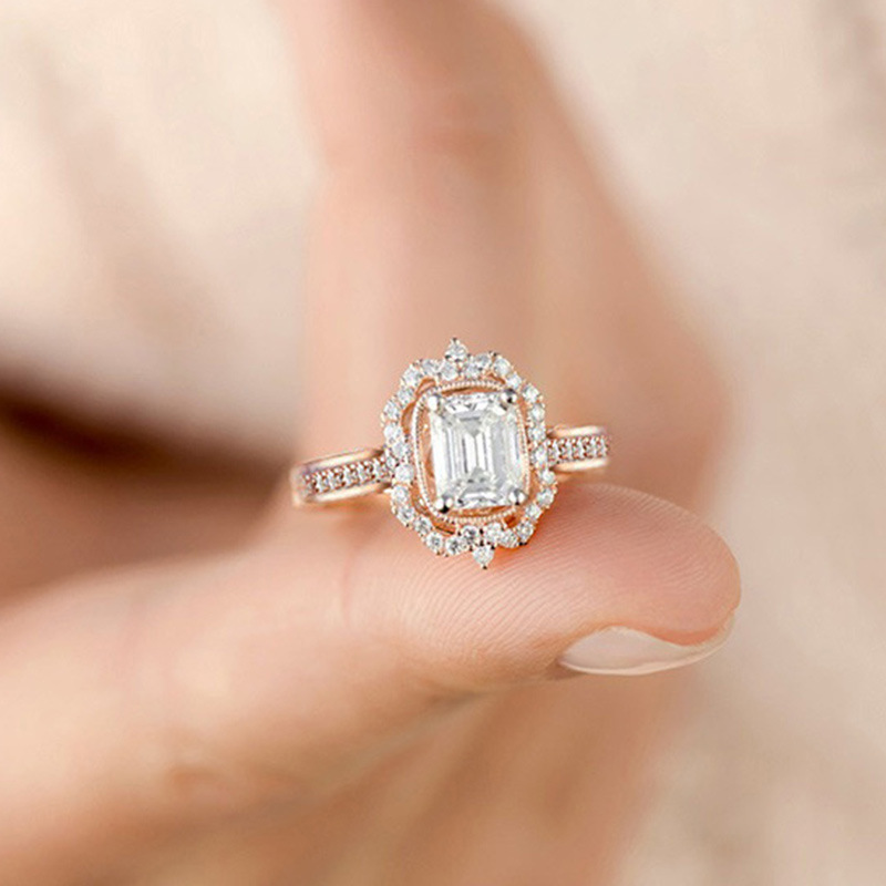 European and American hot-selling copper-plated rose gold zircon square diamond princess ring European and American fashion engagement jewelry