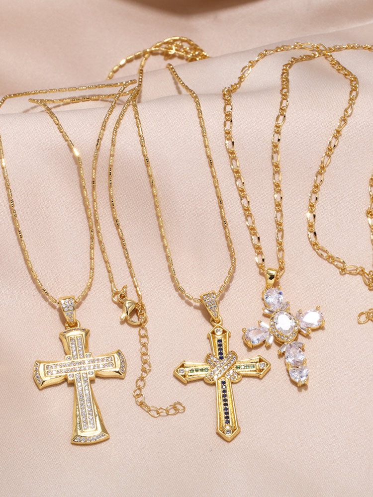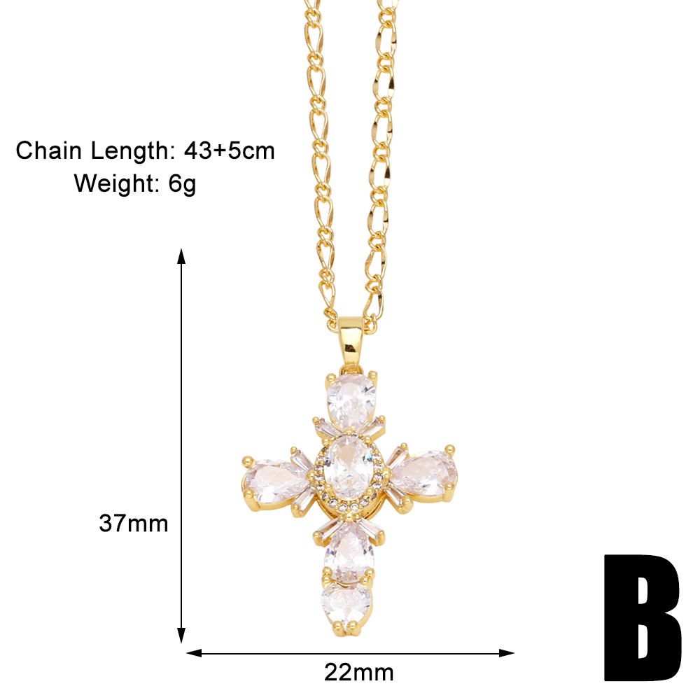 European and American hot selling cross pendant necklace personality all-match hip-hop inlaid zircon gold-plated clavicle chain nkb157