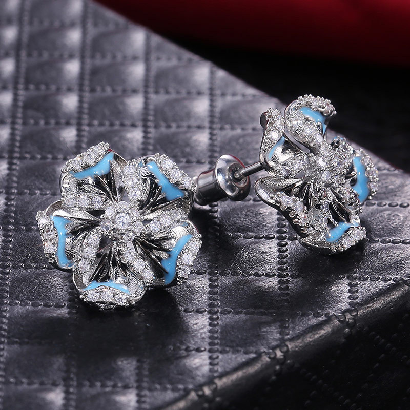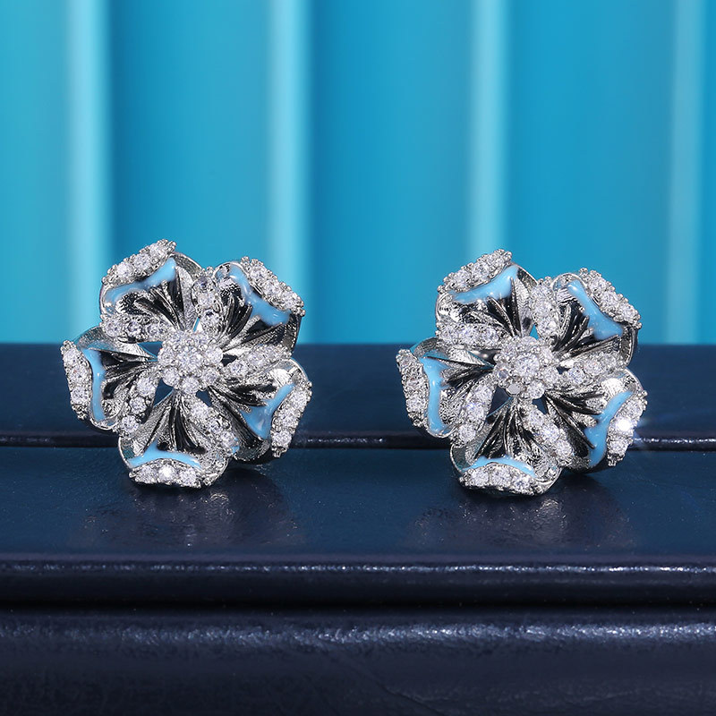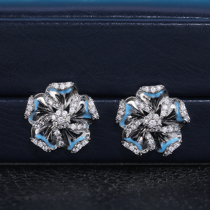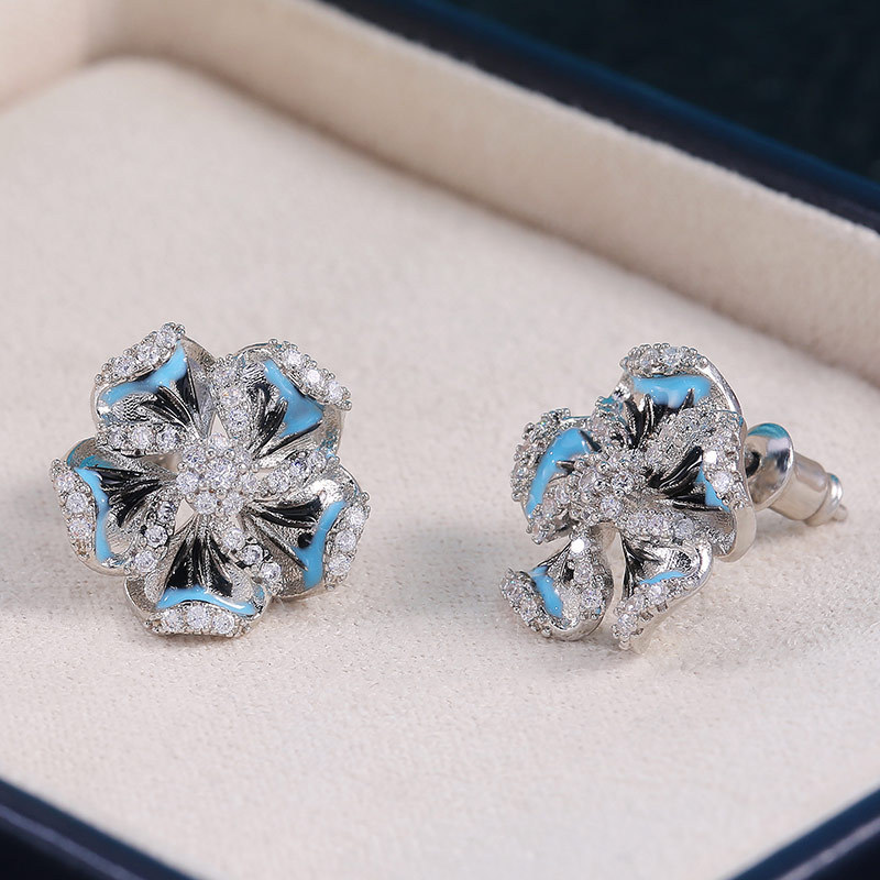European and American hot-selling fashion creative colorful epoxy zircon flower and leaf earrings for women