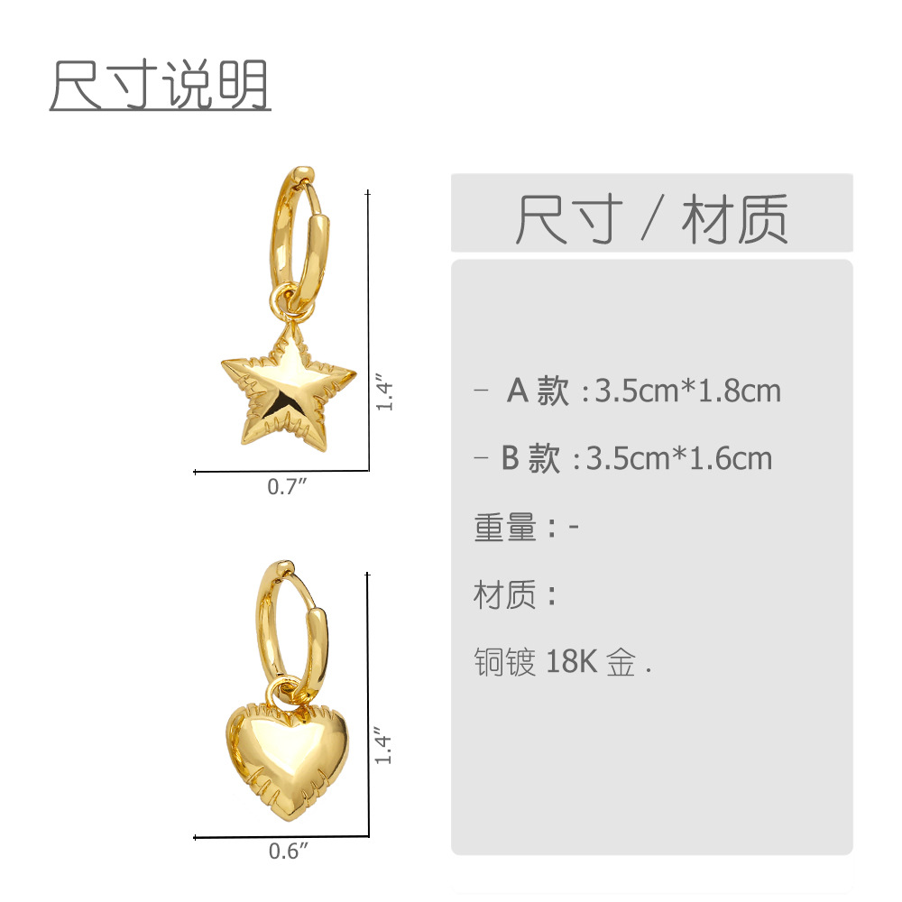 European and American hot-selling fashion simple high-end love earrings niche design five-pointed star earrings eru71