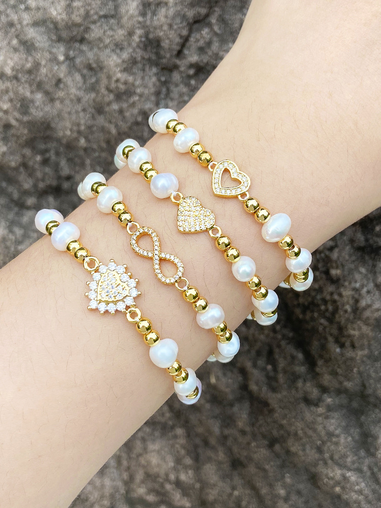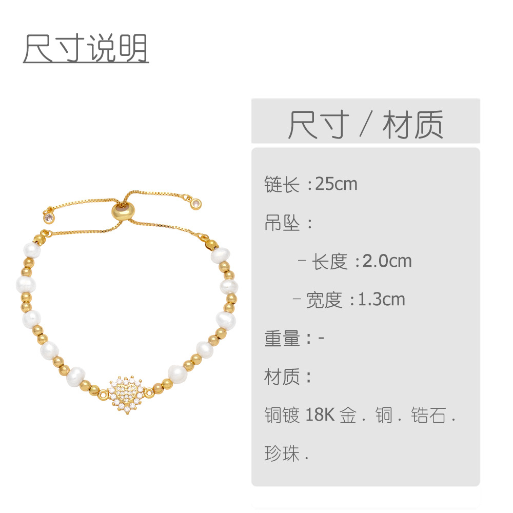 European and American hot selling fashion simple love bracelet niche personality pearl hand jewelry inlaid zircon bracelet brk66