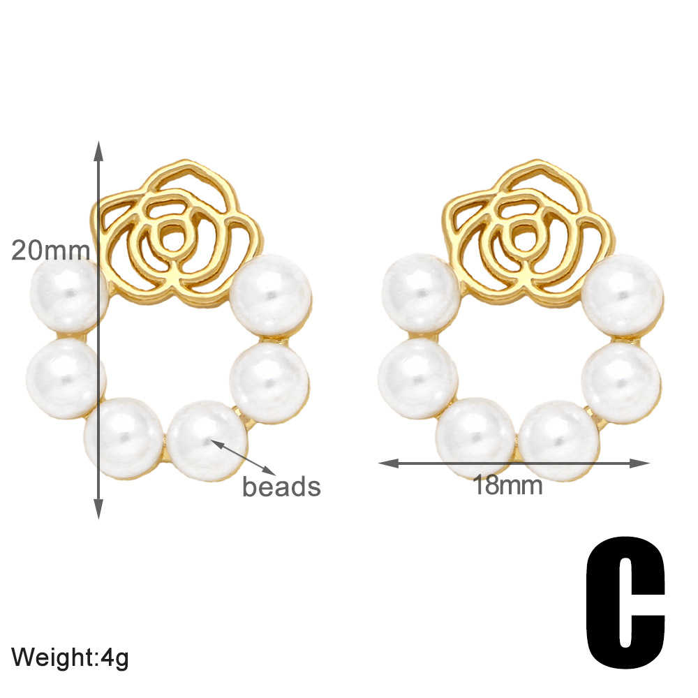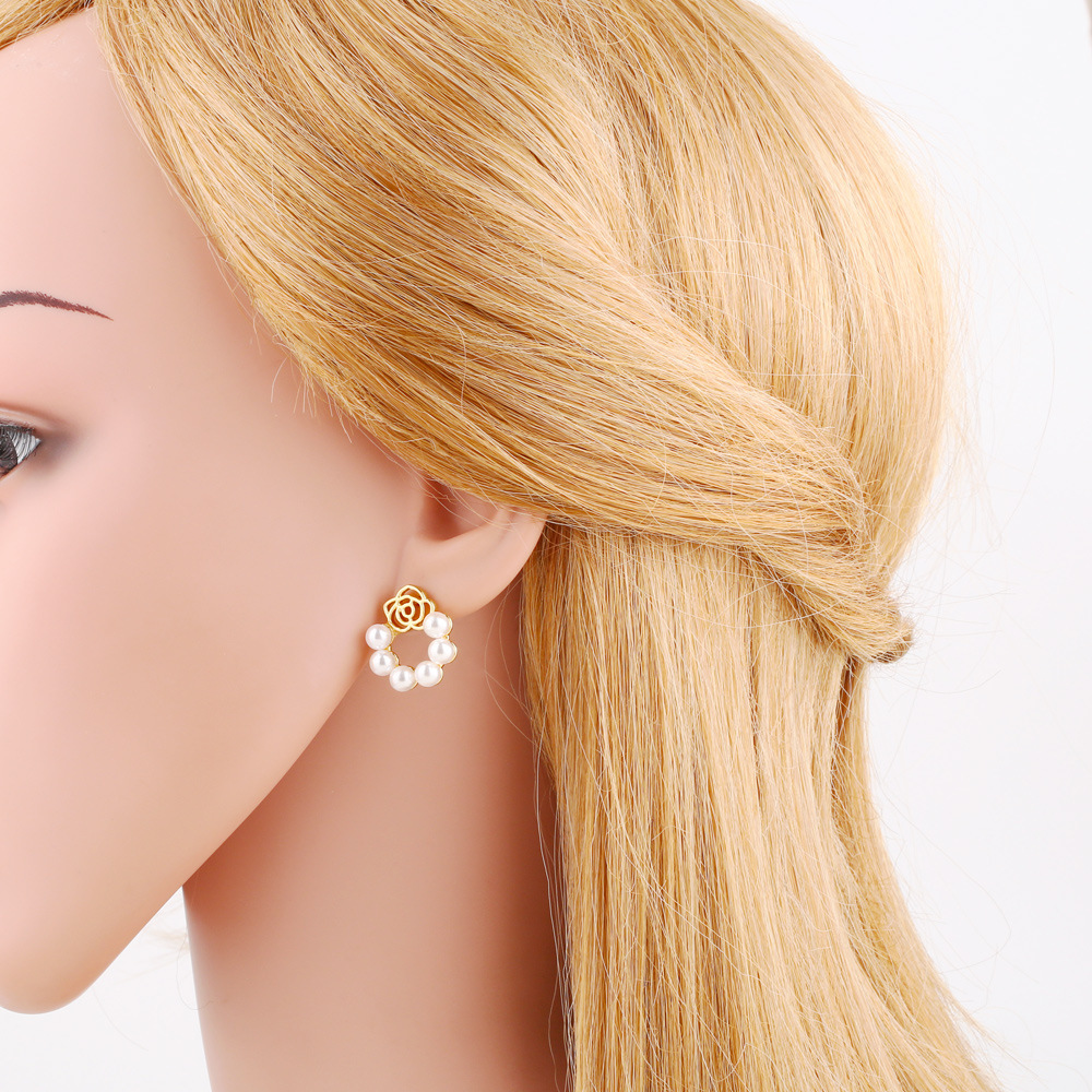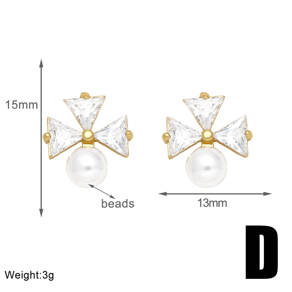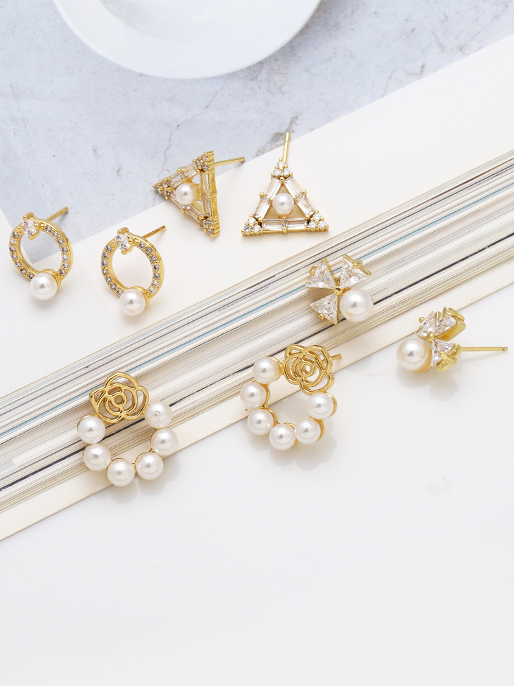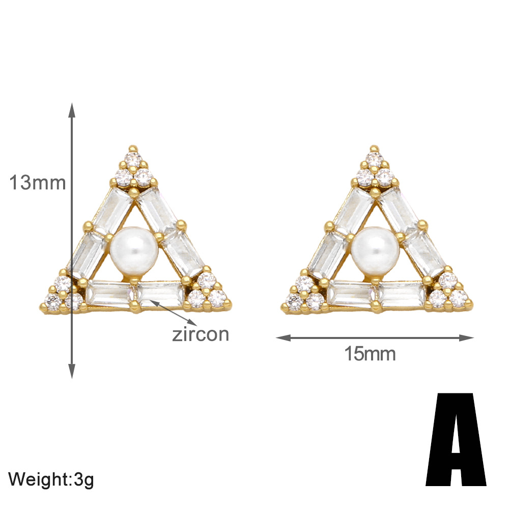 European and American hot-selling flower pearl earrings copper plated 18k gold style temperament triangle earrings eru89