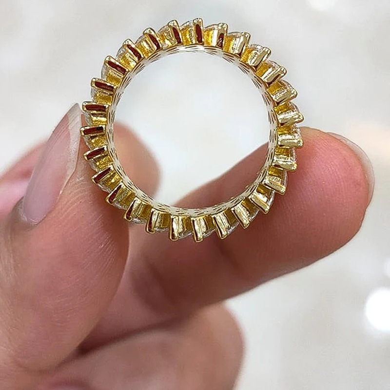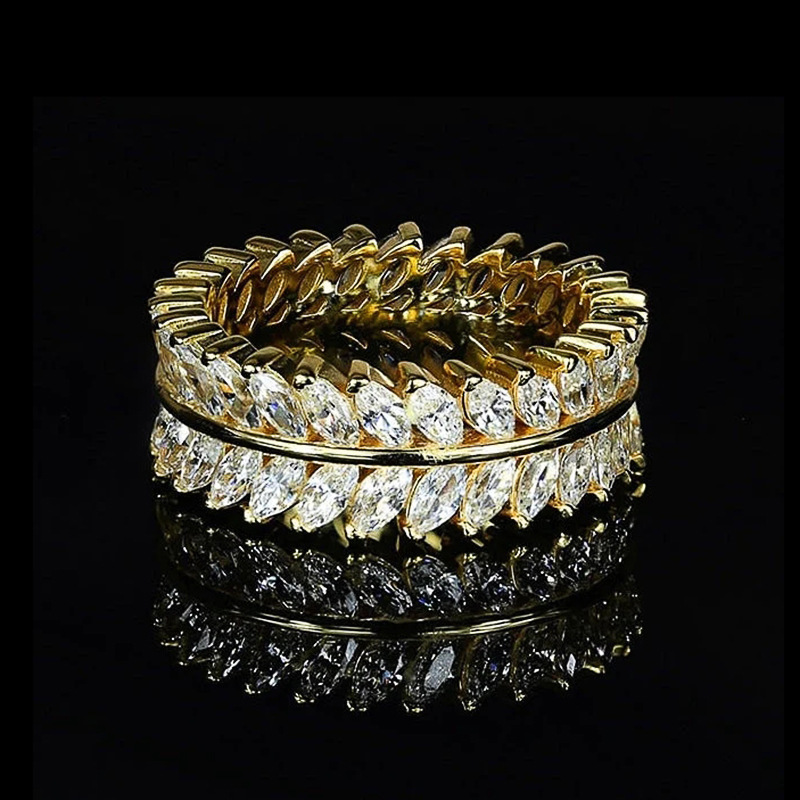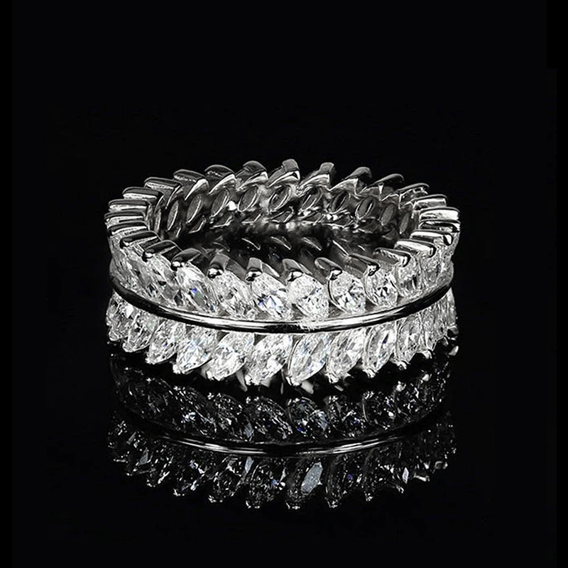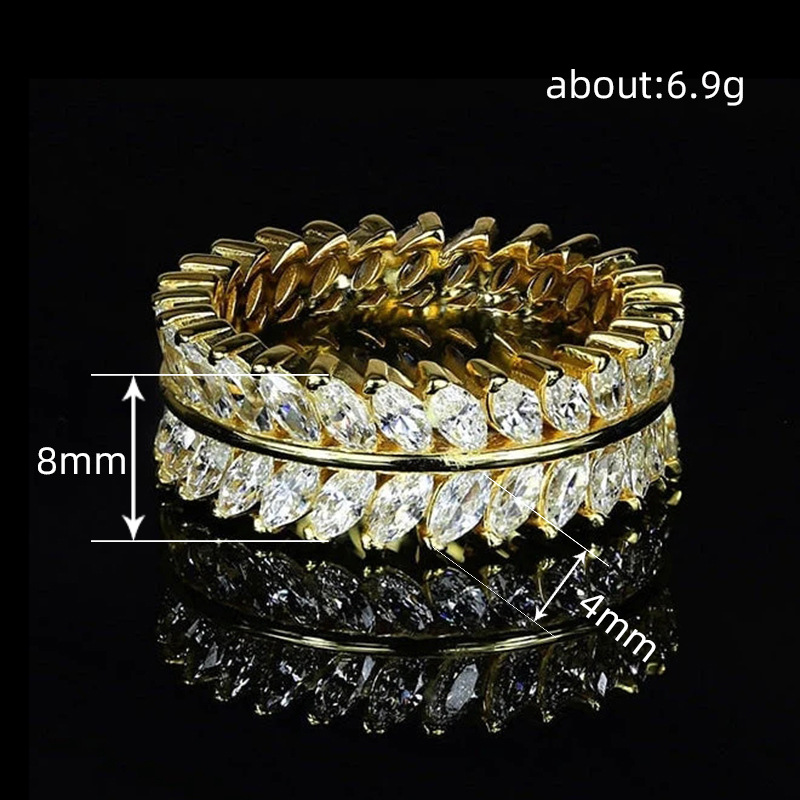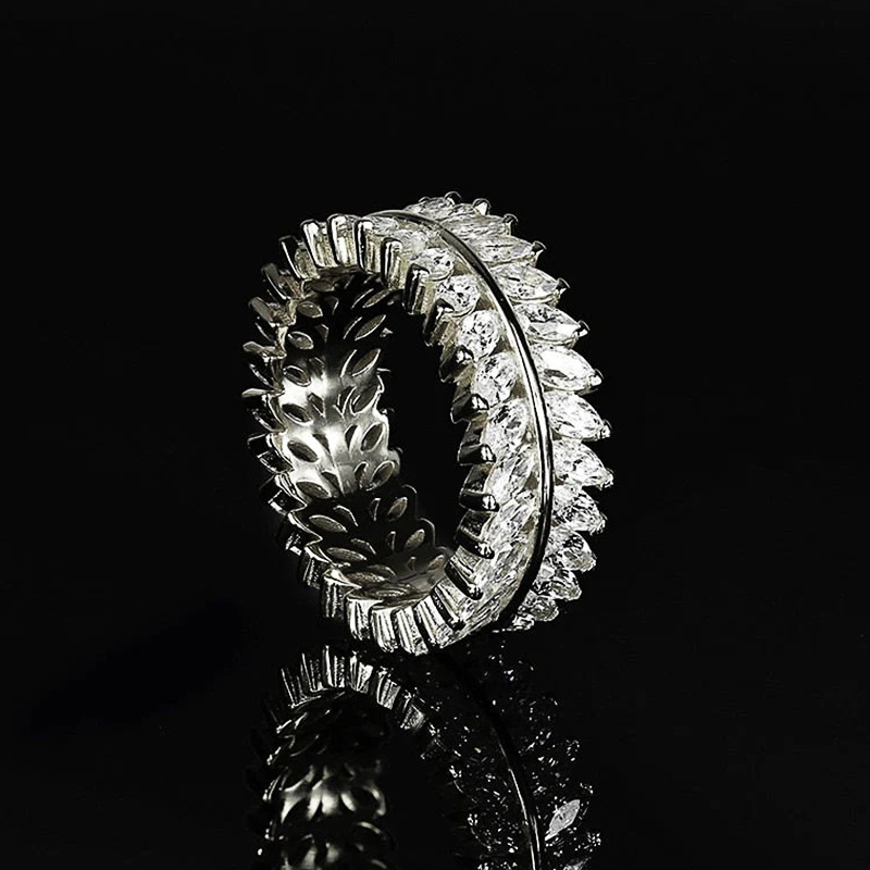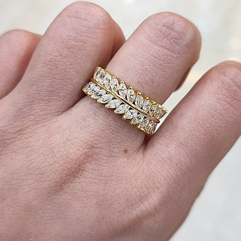 European and American hot-selling full-circle ring, luxurious and full-inlaid temperament willow leaf ring, exquisite and creative ring