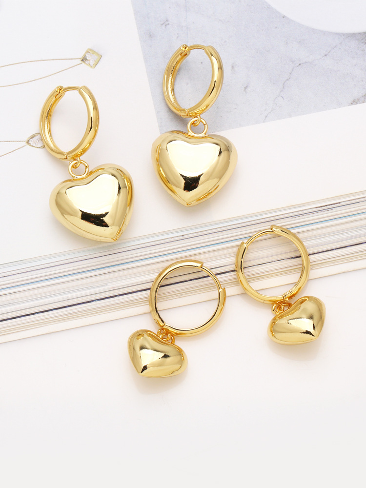 European and American hot selling golden peach heart earrings simple fashion retro love heart shaped earrings ear buckle erv30