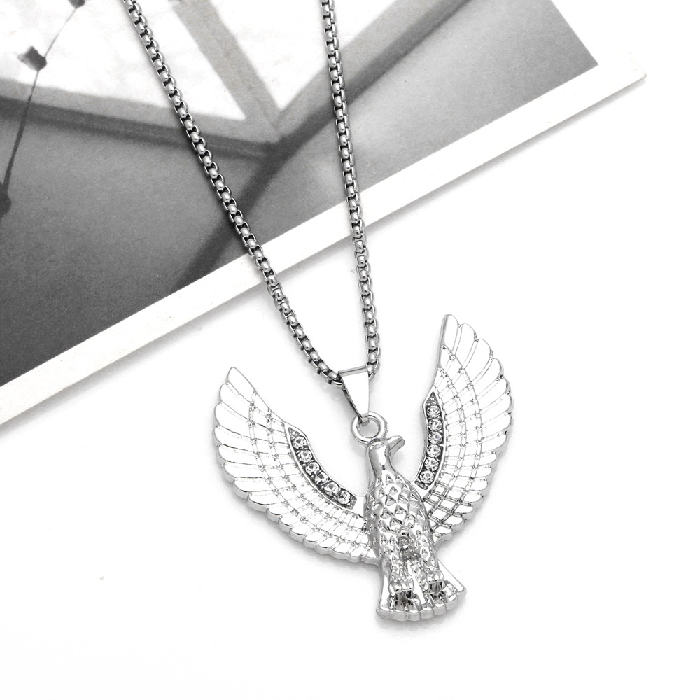 European and American hot selling hip hop stainless steel necklace fashion personality eagle pendant men and women sweater chain nkt27
